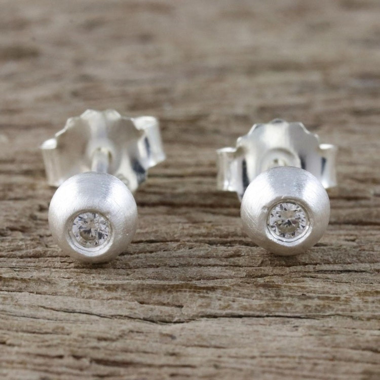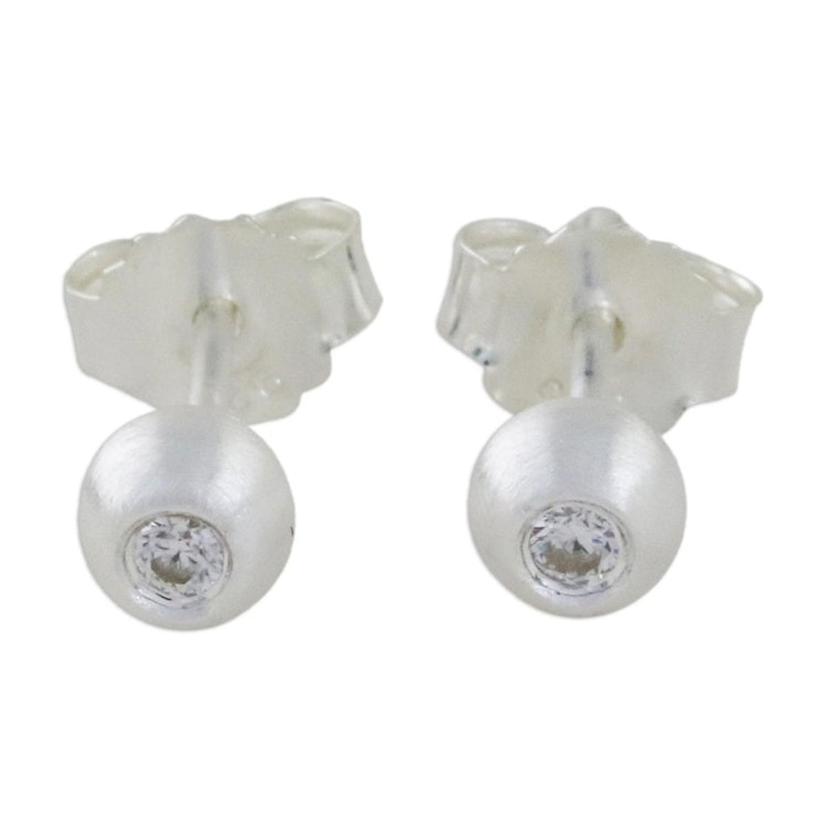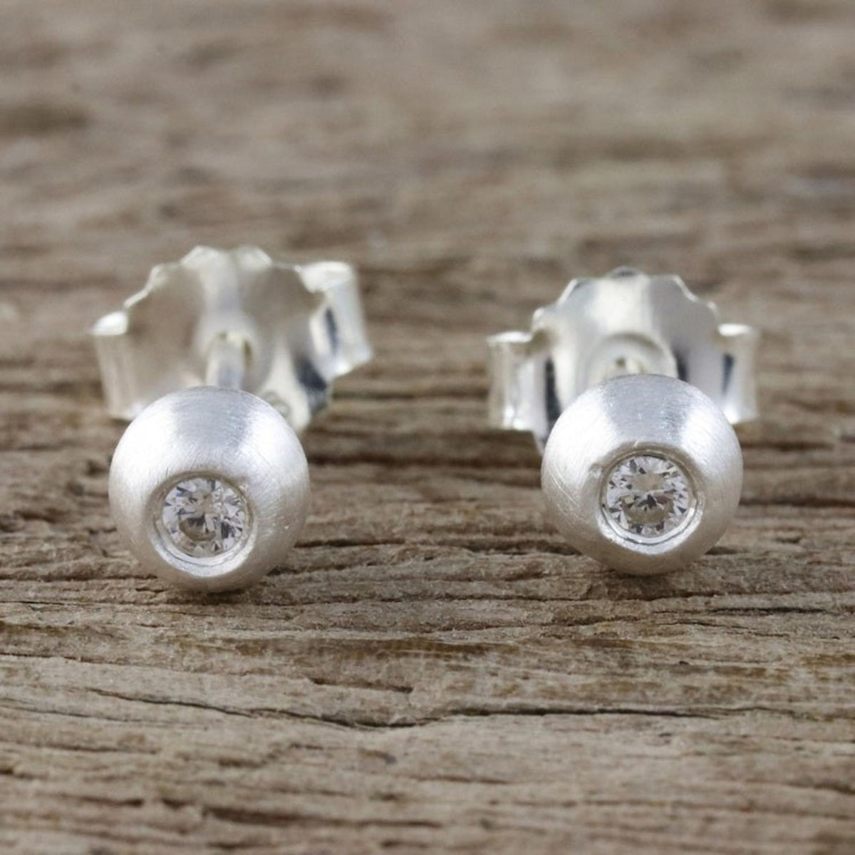 Sterling Silver and CZ Stud Earrings from Thailand 'Sparkling Eyes'