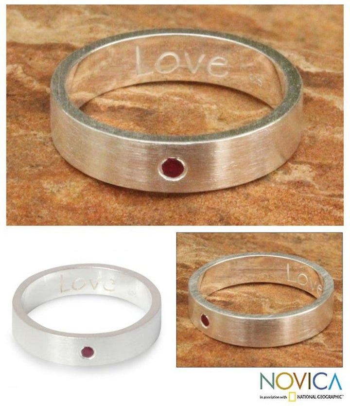 Sterling Silver and Garnet Band Ring 'Impressed by Love'