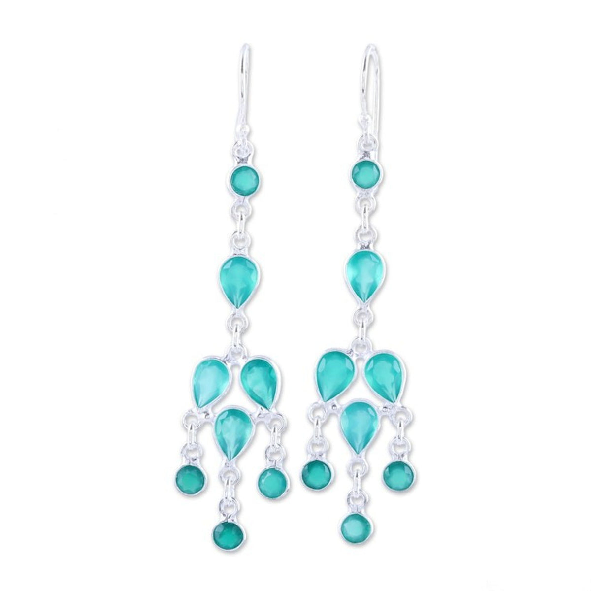 Sterling Silver and Green Onyx Chandelier Earrings 'Leafy Adornment'