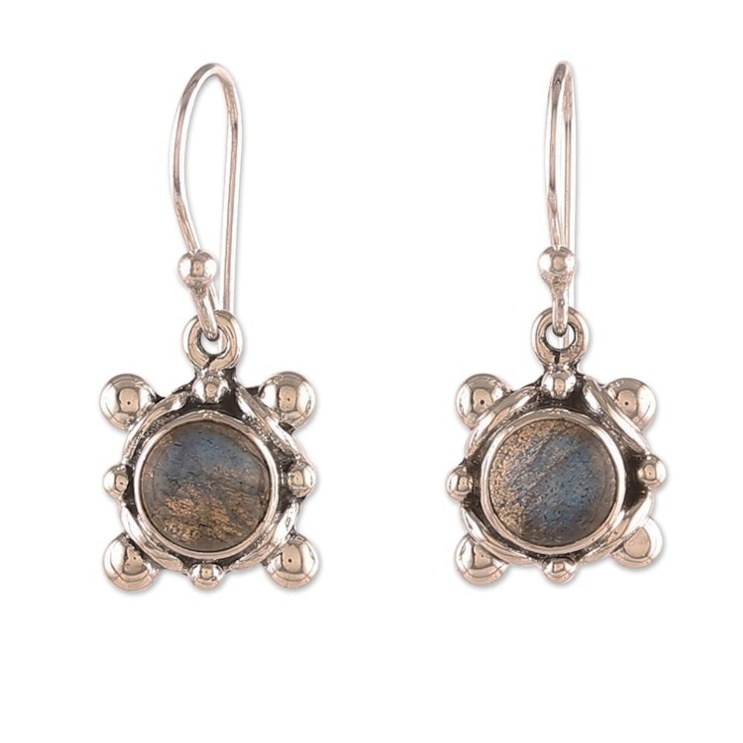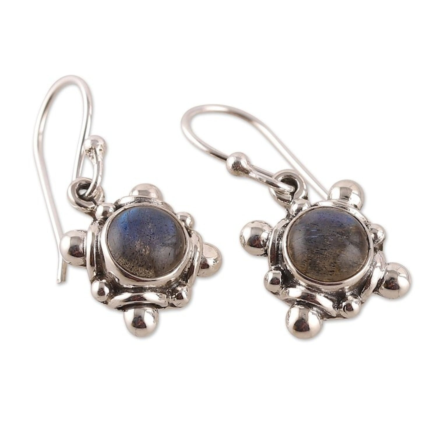 Sterling Silver and Natural Labradorite Dangle Earrings 'Intuitive Cosmos'