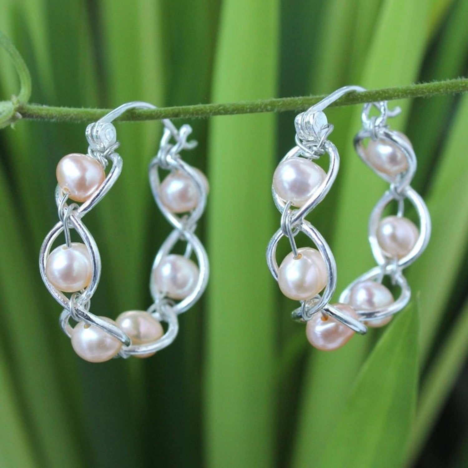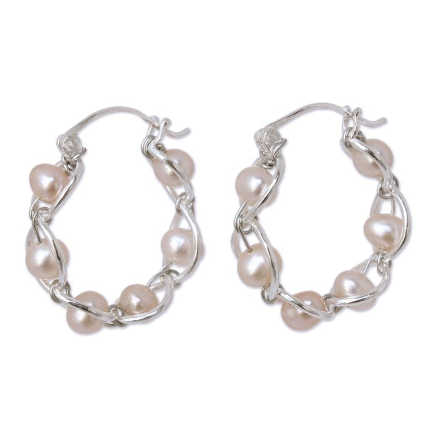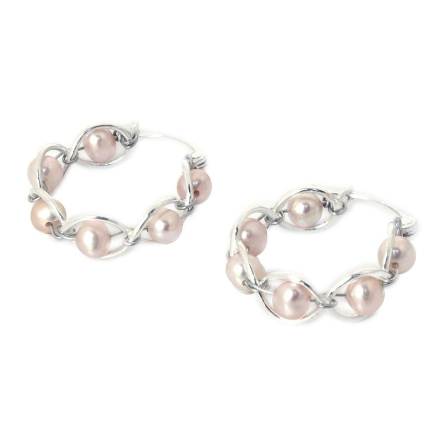 Sterling Silver and Pearl Hoop Earrings 'Peach Twist'