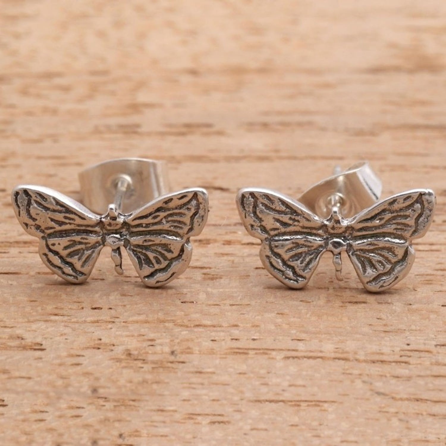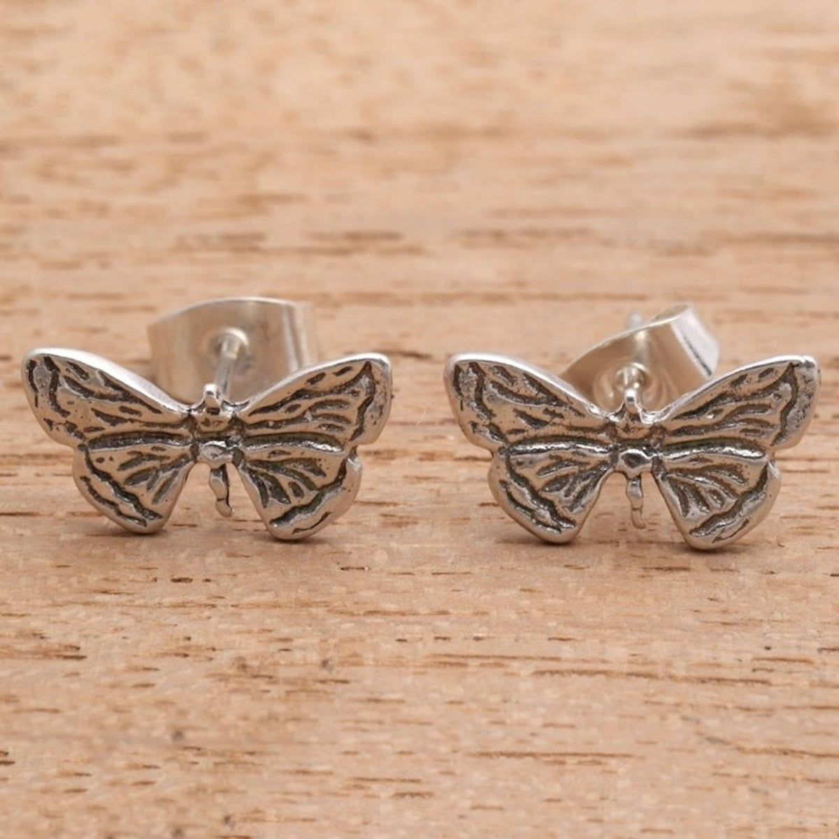 Sterling Silver Butterfly Wing Stud Earrings from Bali 'Pretty Wings'