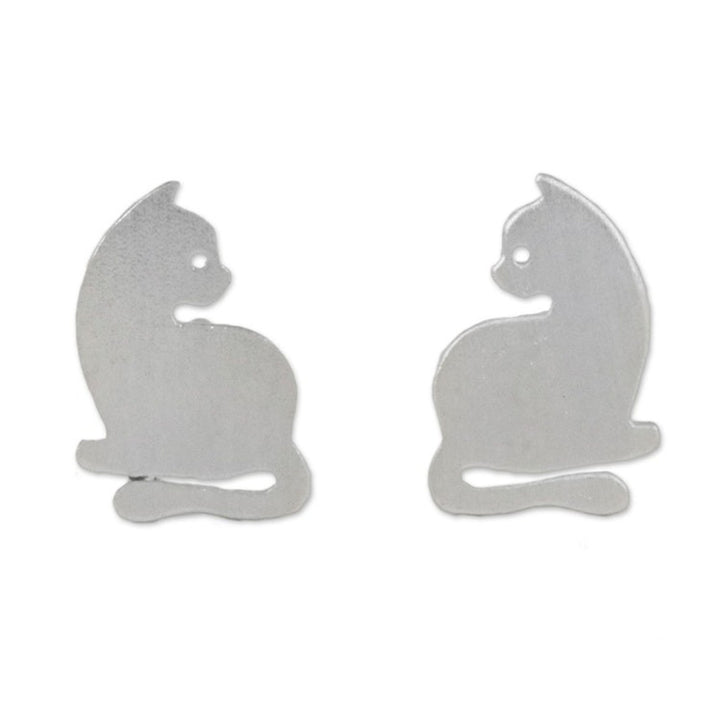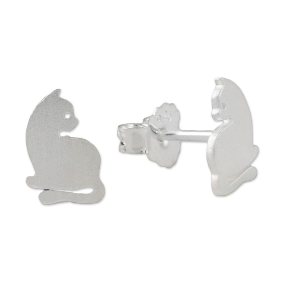 Sterling Silver Cat Stud Earrings from Thailand 'Leisurely Felines'