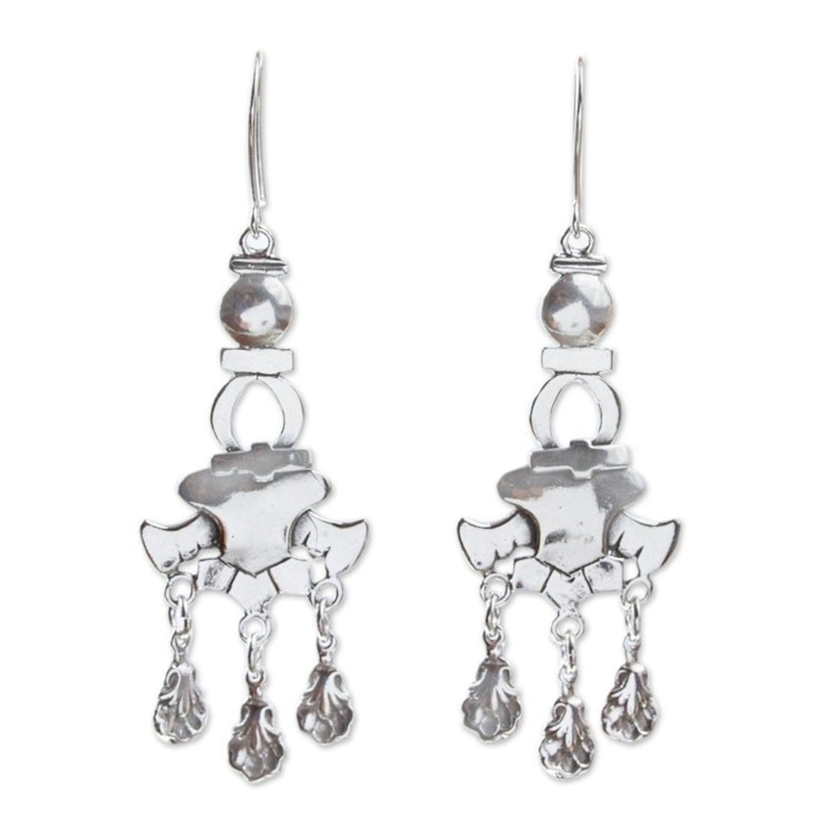 Handcrafted in 925 sterling silver, these hook earrings have a high-polish finish and measure 2.7 inches in length by 0.9 inches in width.