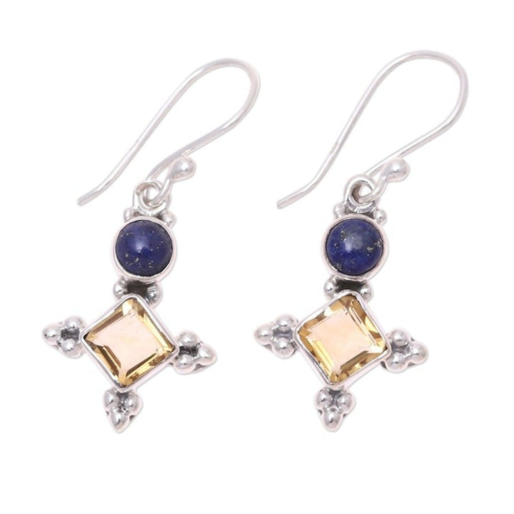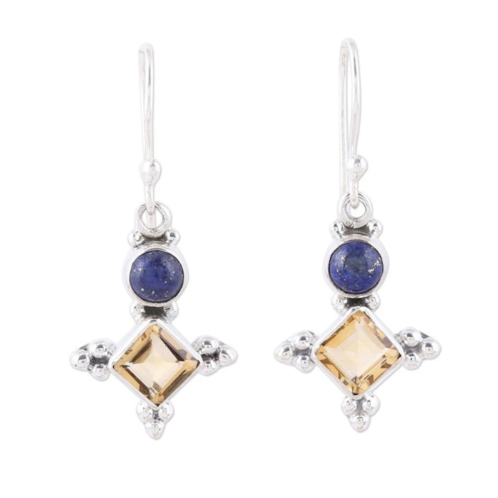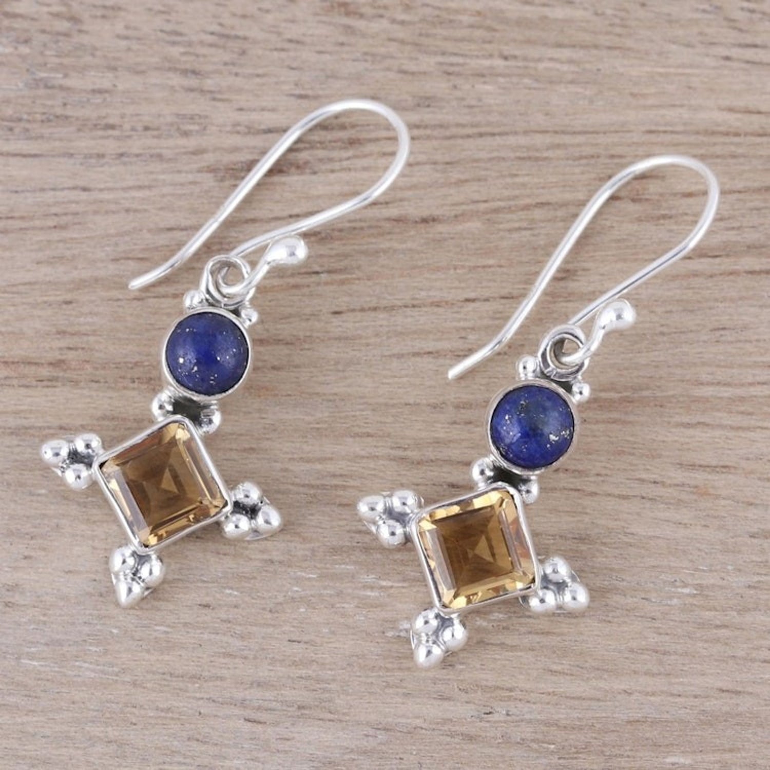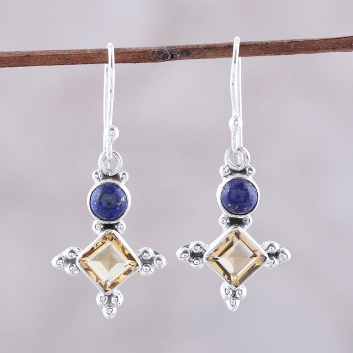 Sterling Silver Citrine and Lapis Lazuli Dangle Earrings 'Shimmering Star'
