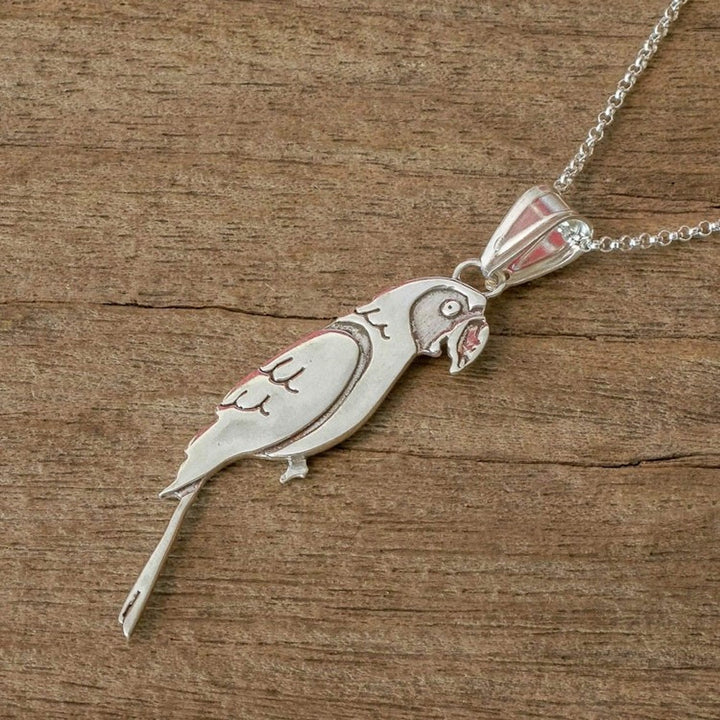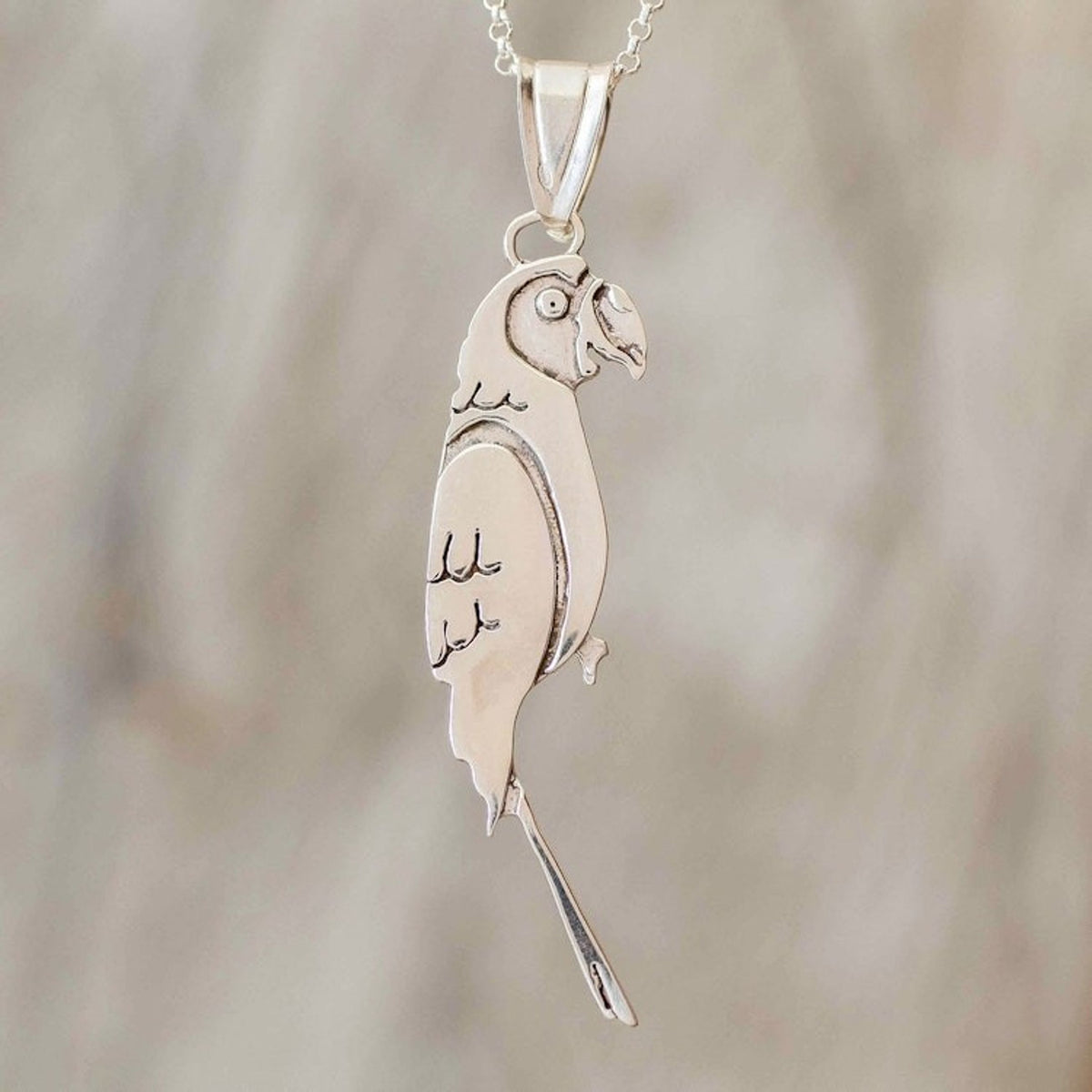 Sterling Silver Costa Rican Macaw Pendant Necklace 'Cloud Forest Macaw'