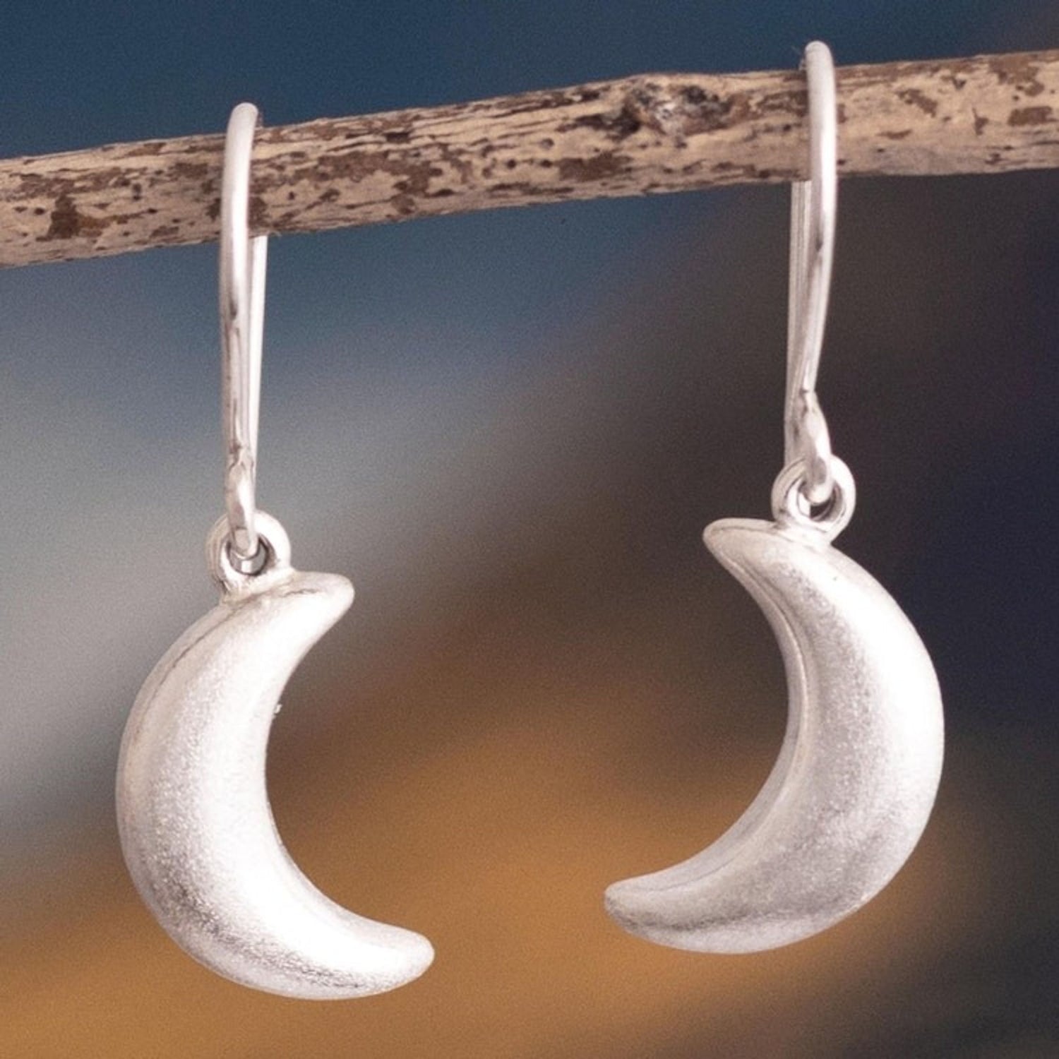 Sterling Silver Crescent Moon Dangle Earrings from Peru 'Facing Moons'