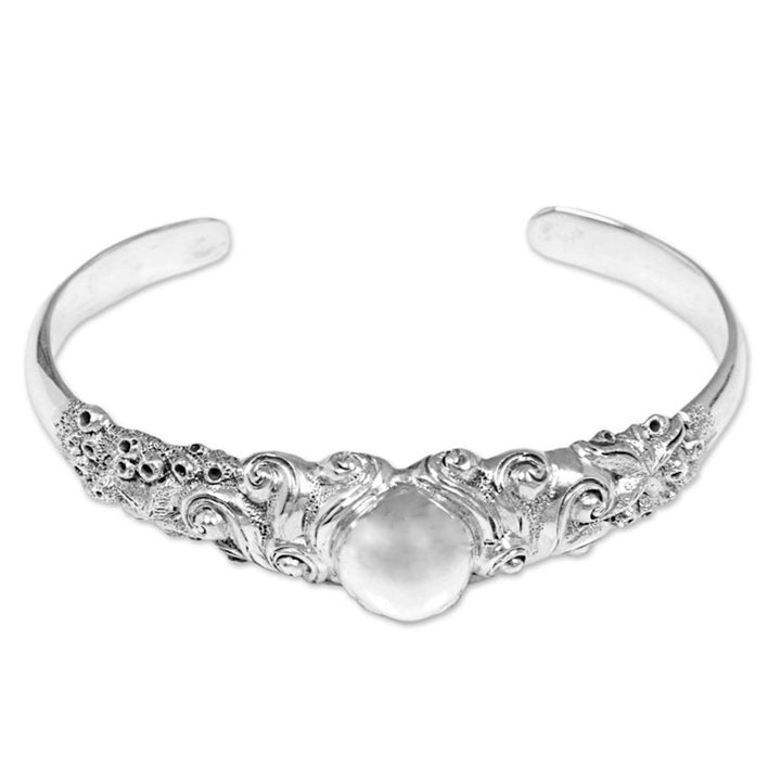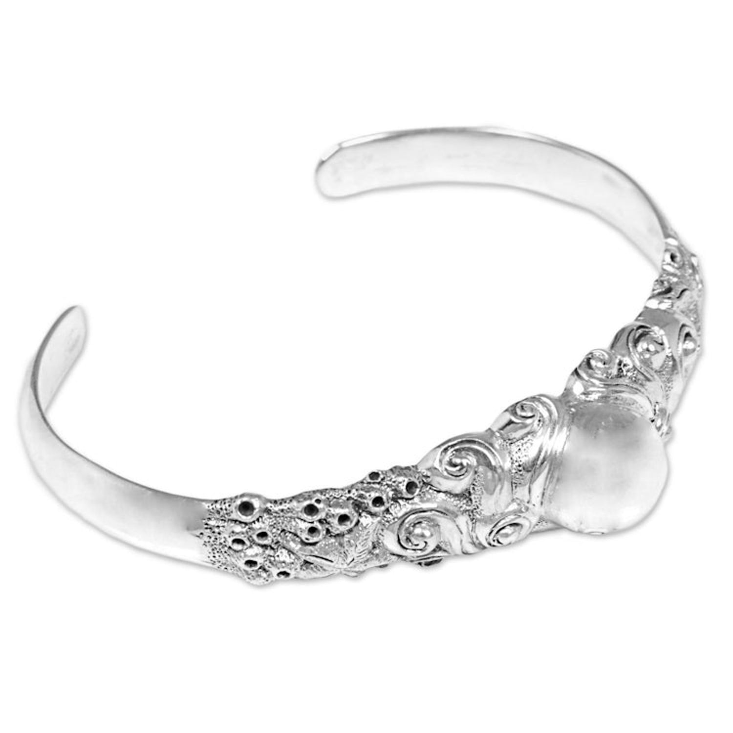 Style Notes: This 'Octopus of the Deep' cuff bracelet by Independent Artisans is a striking and intriguing accessory. Designed by Nyoman Rena, this sterling silver cuff bracelet has an octopus resting on top, flanked by "coral-like details." The combination finish gives it a glistening look that is sure to be noticed. This piece captures both Balinese heritage and contemporary design, blending carving skills with metalwork.