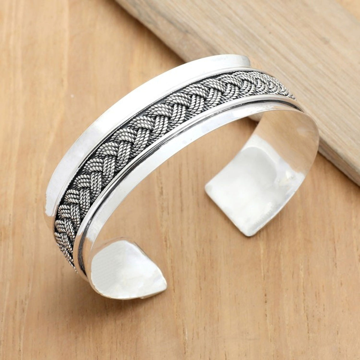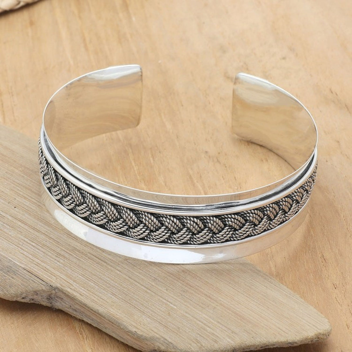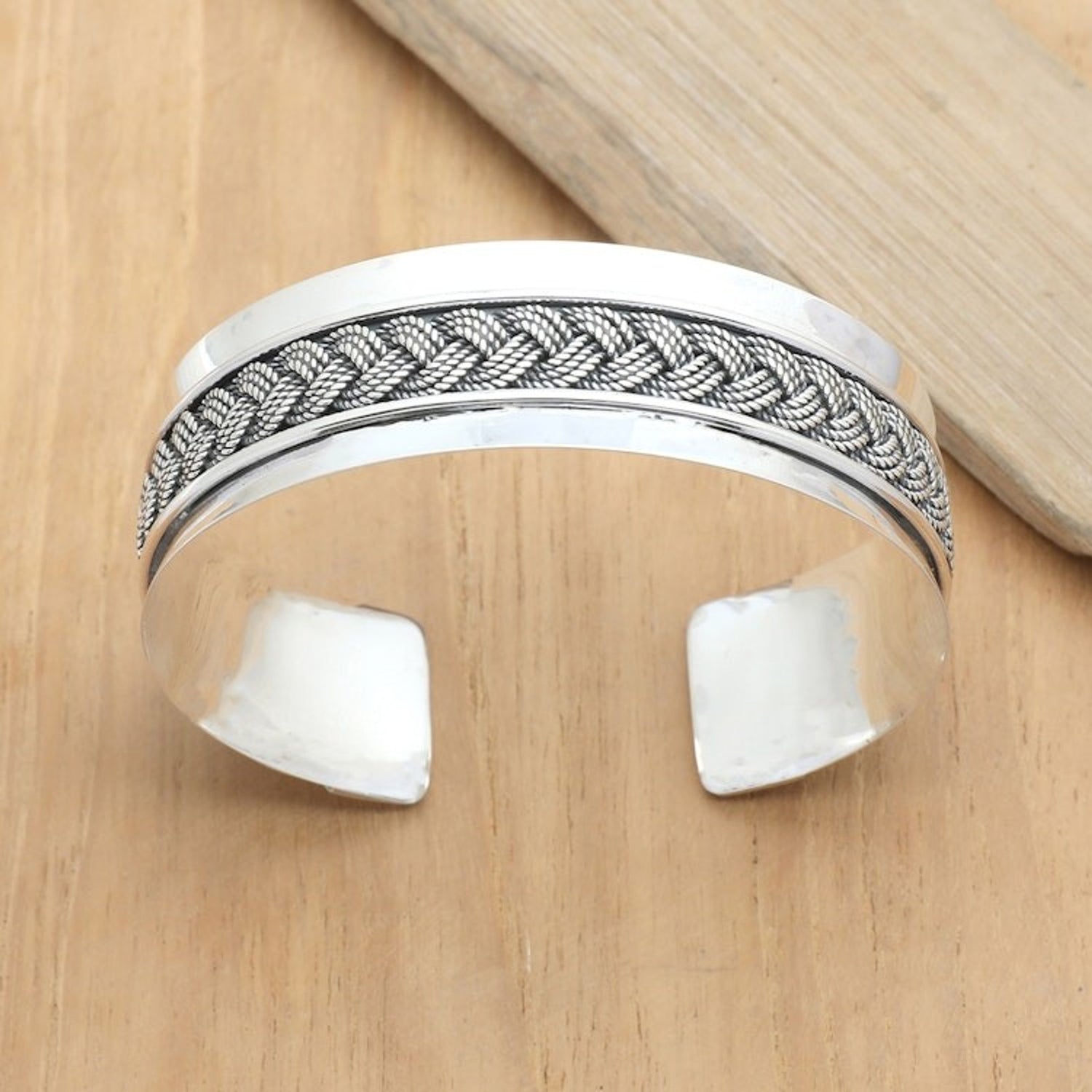 This 'Queen's Knots' cuff bracelet by Independent Artisans is a classic and splendid accessory. Designed by Cahya Krisna, this sterling silver cuff bracelet features "flawlessly crafted knots" inspired by Bali's unique elegance. The polished finish creates a classic vibe, making it perfect for formal or casual occasions. This piece is a challenge to create original works of exceptional quality.