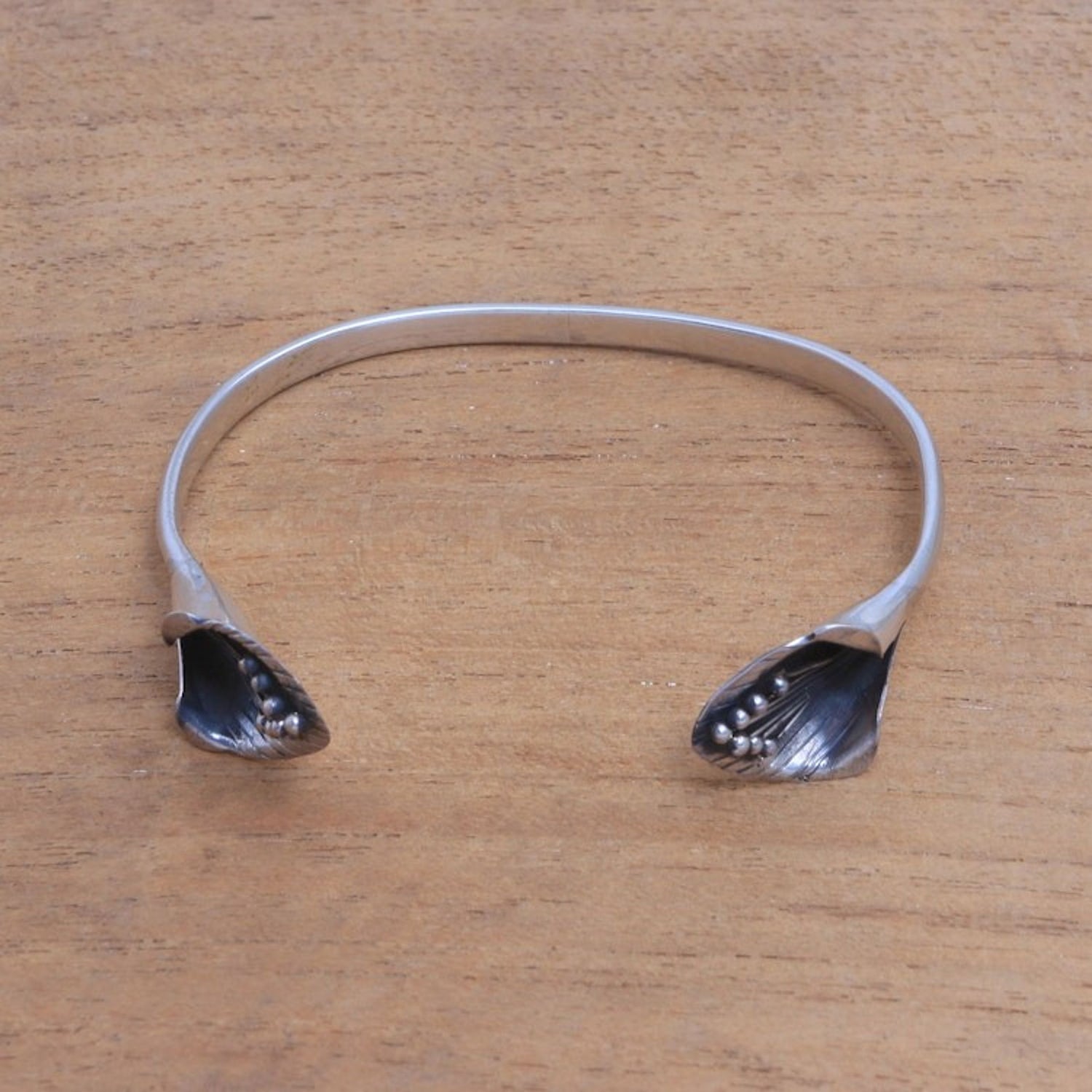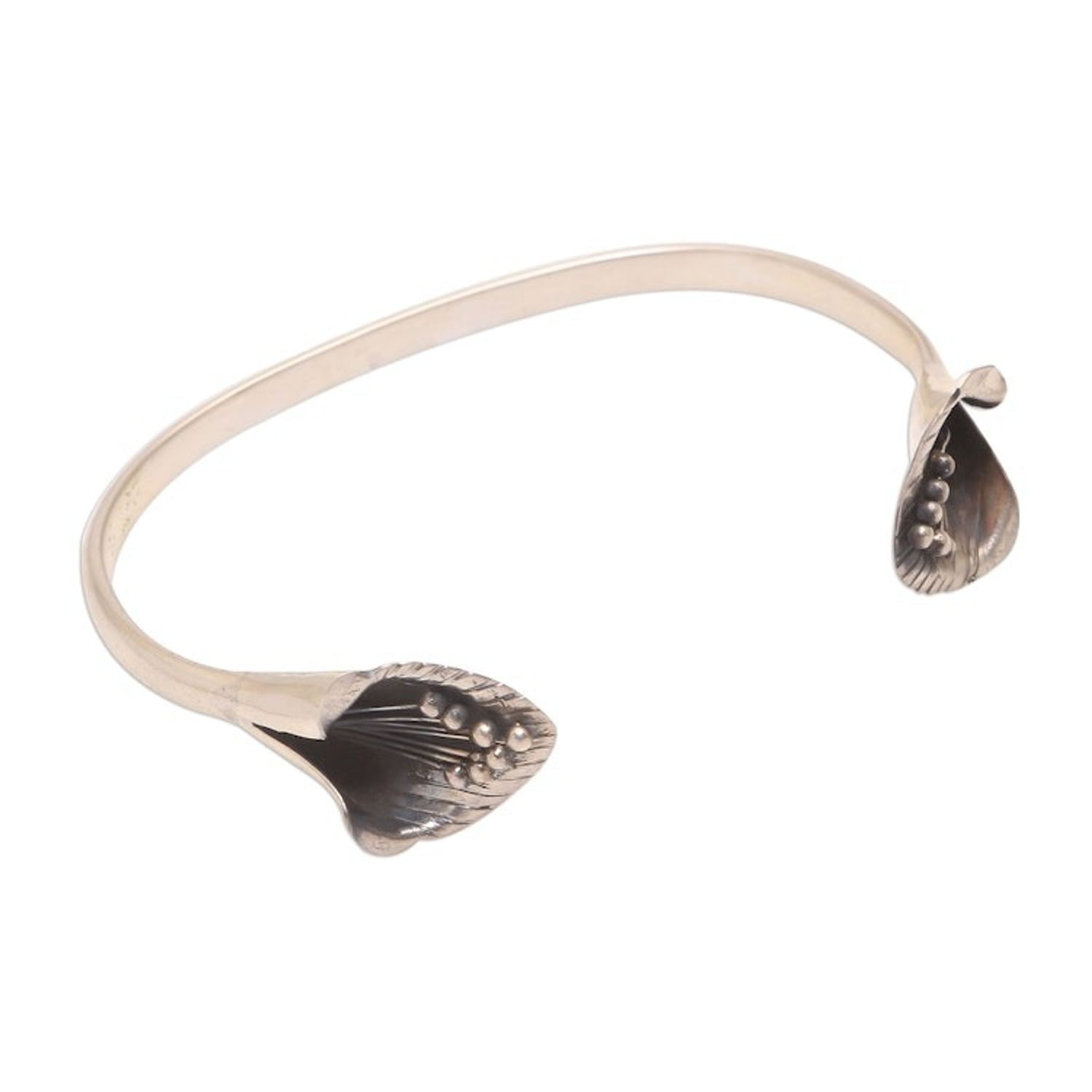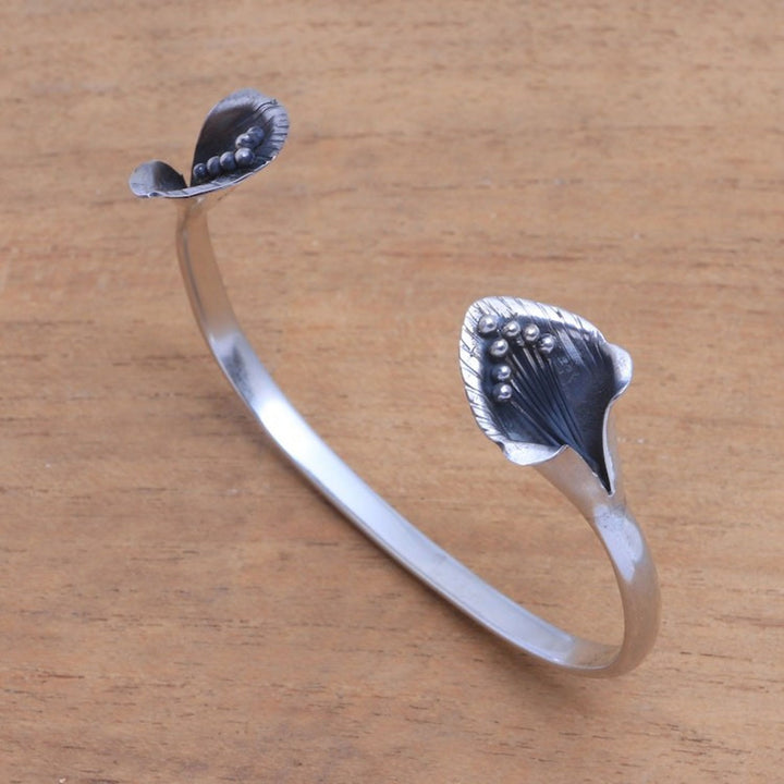 Sterling Silver Cuff Bracelet with Floral Ends from Bali 'Floral Twins'