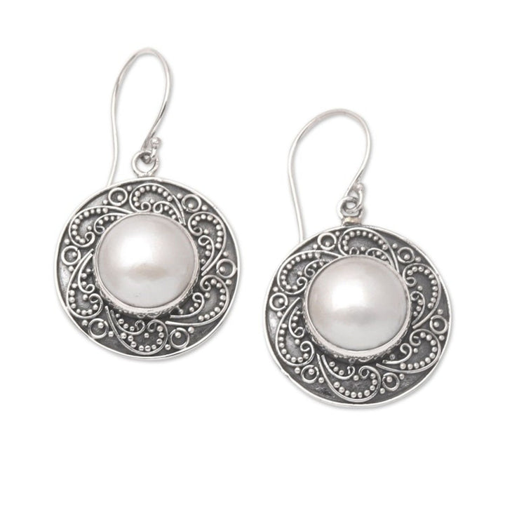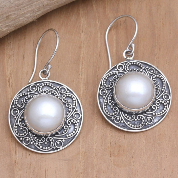 Sterling Silver Cultured Pearl Dangle Earrings from Bali 'Heavenly Blossoms'