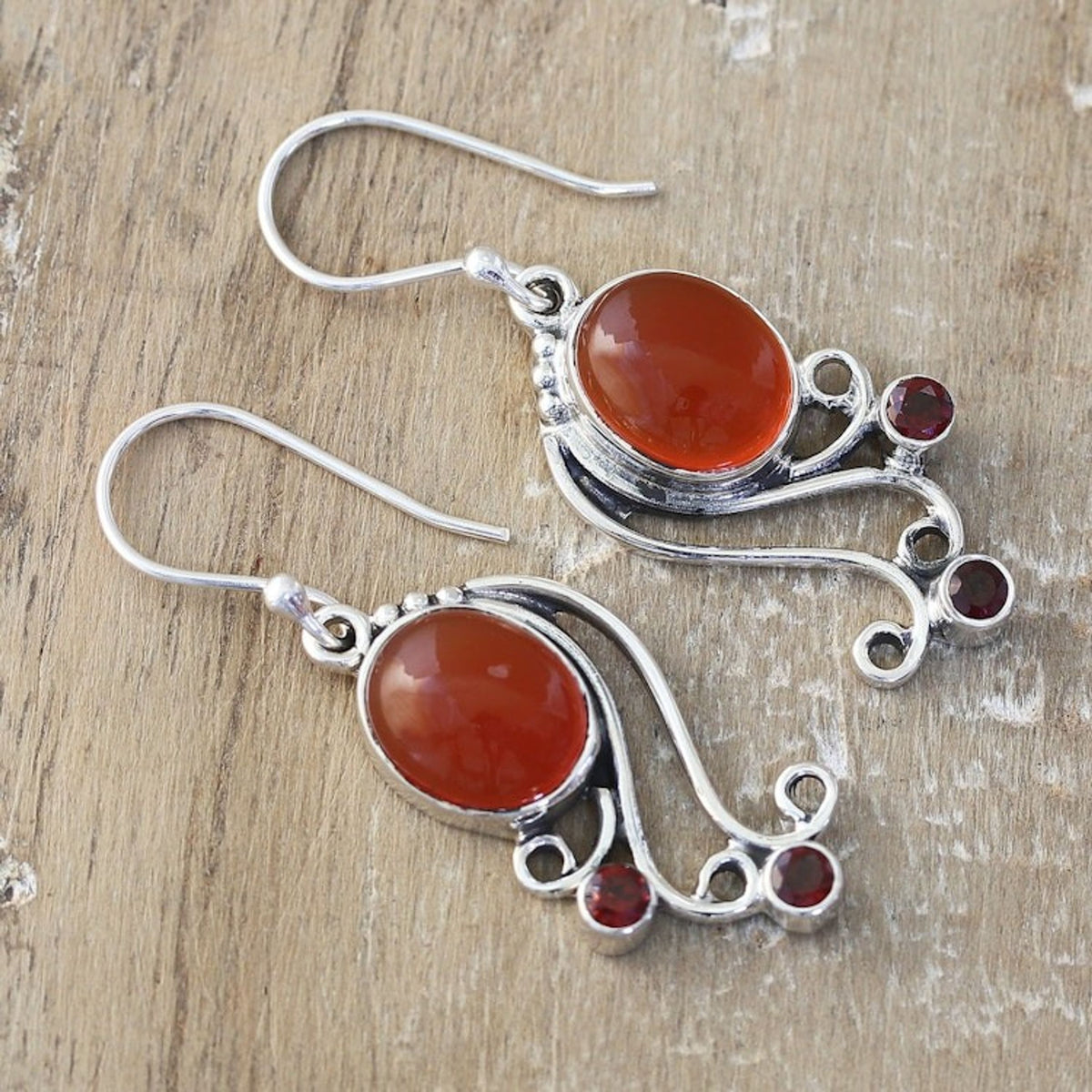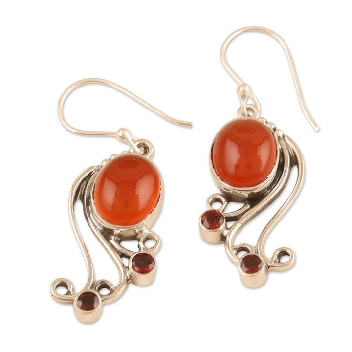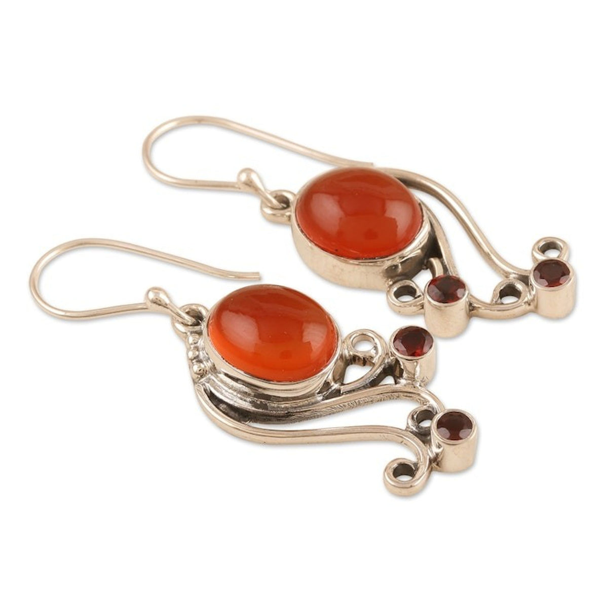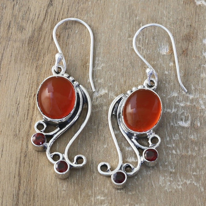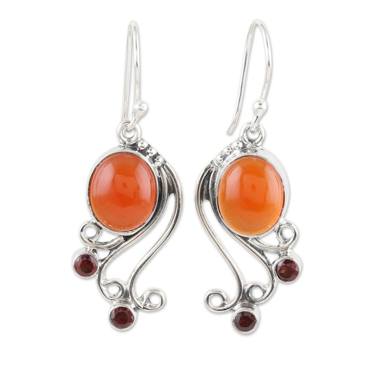 Sterling Silver Dangle Earrings with Carnelian and Garnet 'Vibrant Swirls'