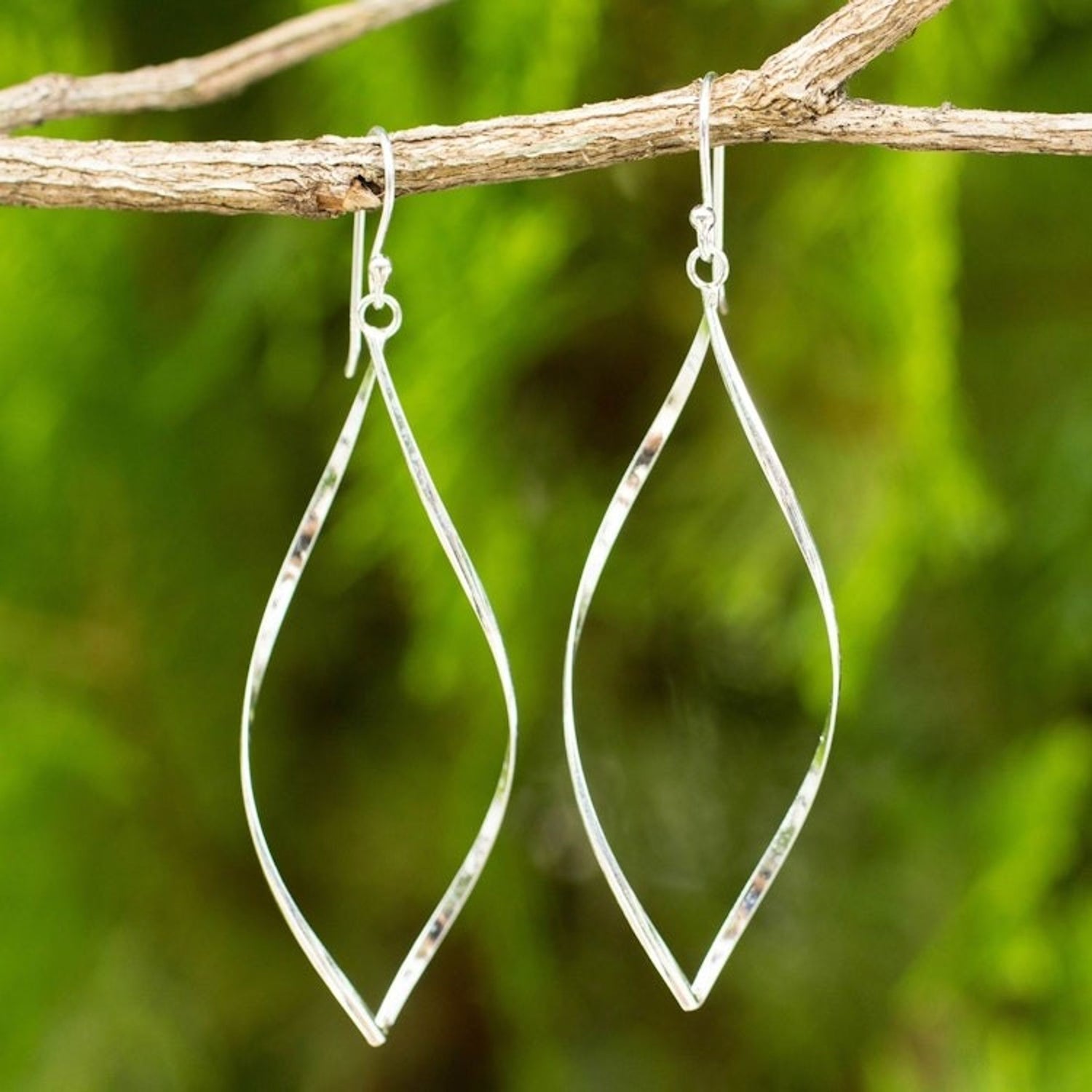 These 'Curvature' dangle earrings by Independent Artisans are an elegant and lightweight accessory. Designed by Pichaya, these sterling silver earrings feature "tendrils of polished sterling silver" that form marquise-shaped loops. The high-polish finish gives them a lovely shine. This piece blends contemporary simplicity with echoes of the past and is a way to bring joy to everyday life.