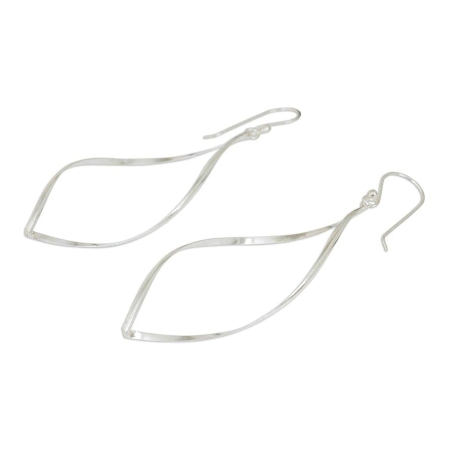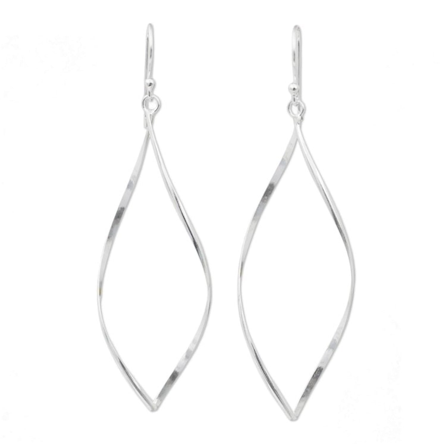 Sterling Silver Dangle Earrings with Curved Marquise Shape 'Curvature'