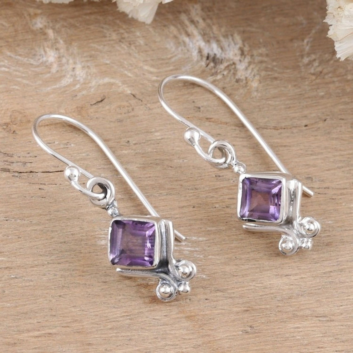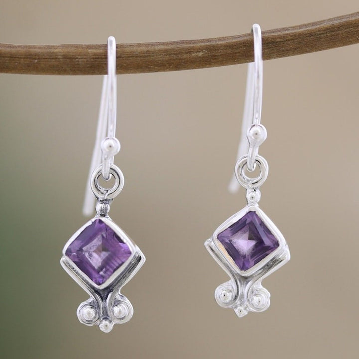 Sterling Silver Dangle Earrings with Faceted Amethyst Stones 'Adorable Wisdom'