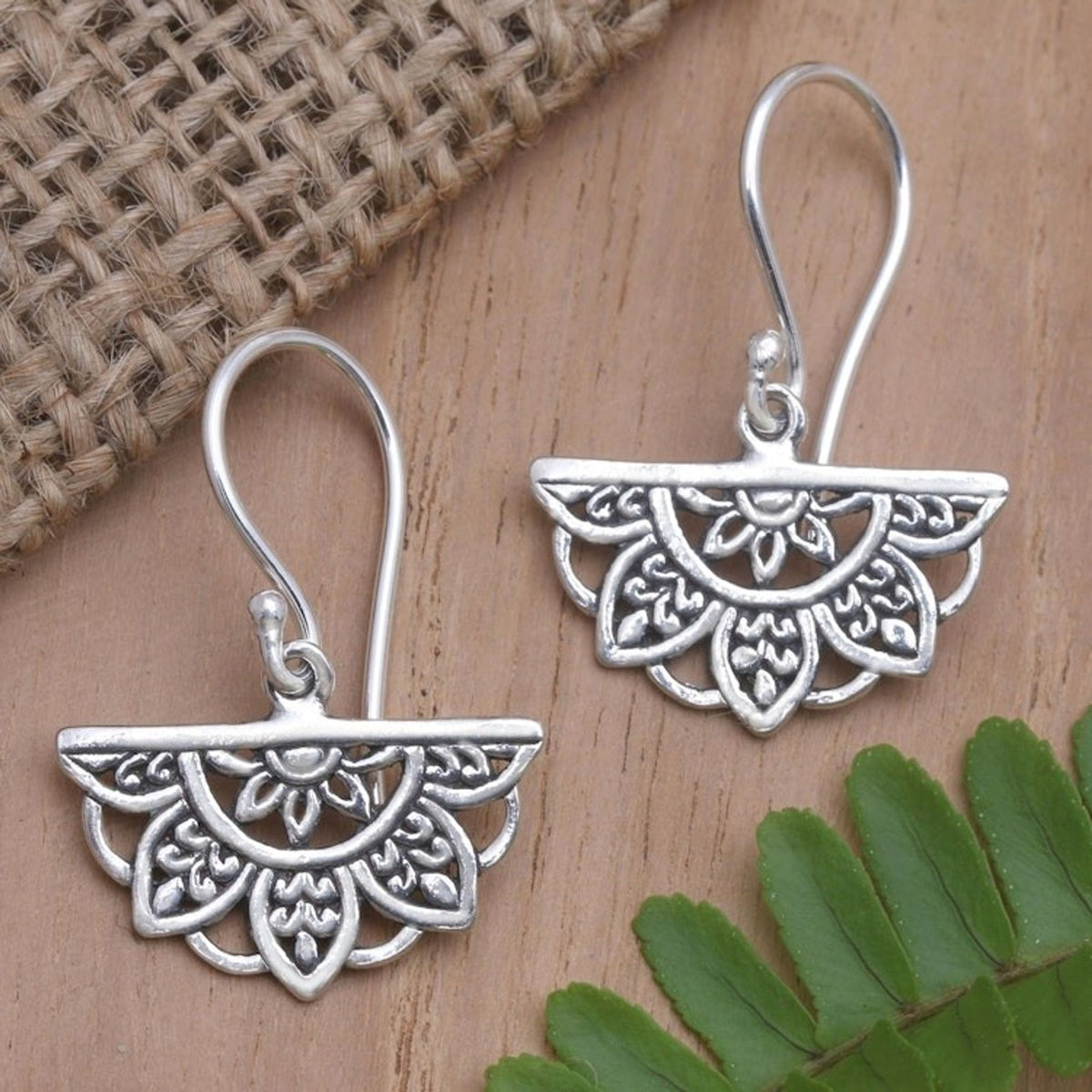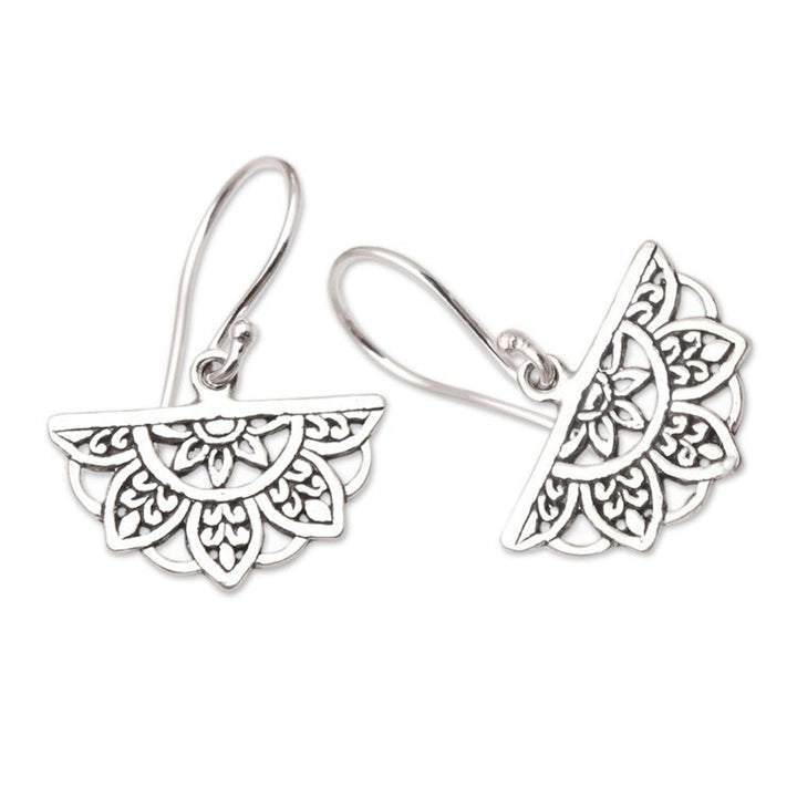 These 'Halfway There' dangle earrings by Independent Artisans are a clever and elaborate accessory. Designed by Budiharta, these sterling silver earrings feature a half-flower motif. The combination finish adds a lovely texture. This piece is a bridge between past and present, sustaining his community's craft in an era of change.