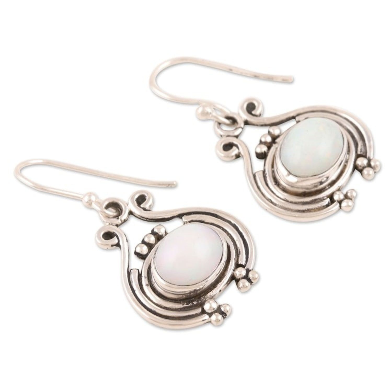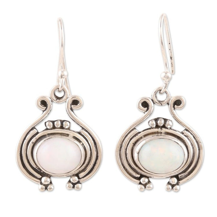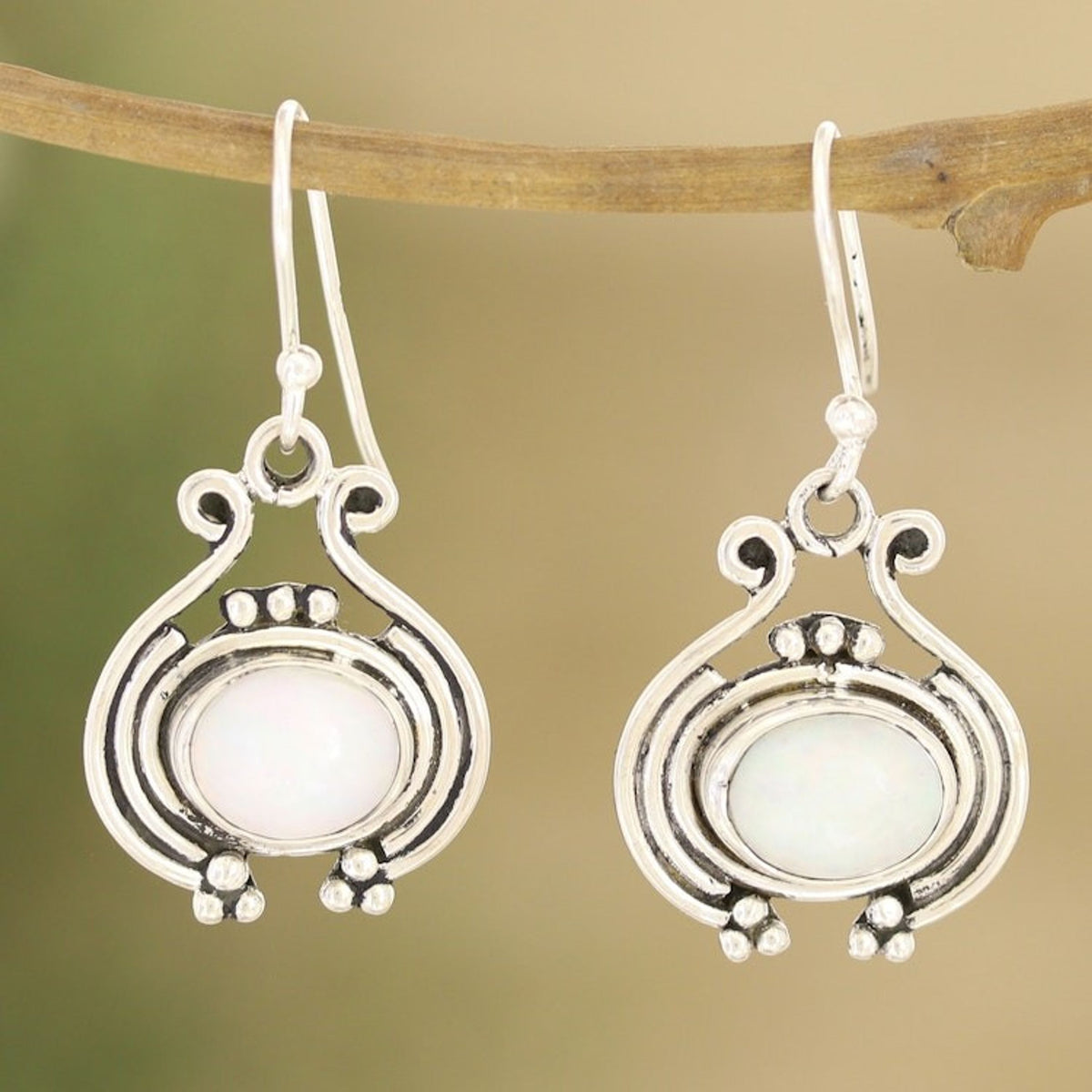 Sterling Silver Dangle Earrings with Opal Stones from India 'Opal Opulence'