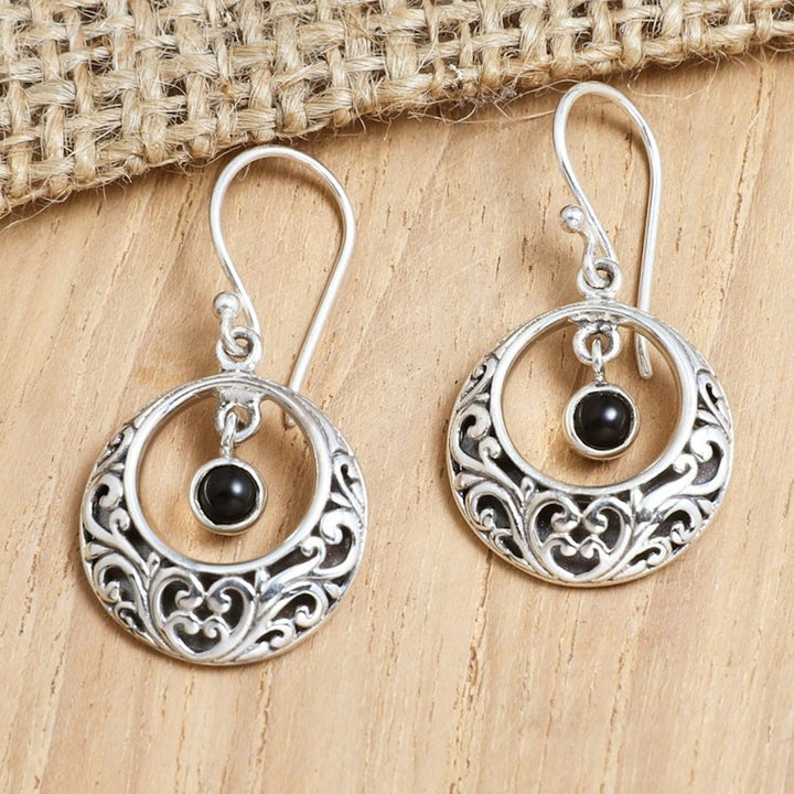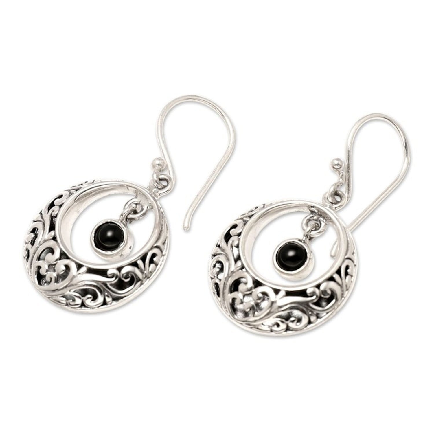 Sterling Silver Dangle Earrings with Swaying Onyx Stone 'Baturiti Garden in Black'