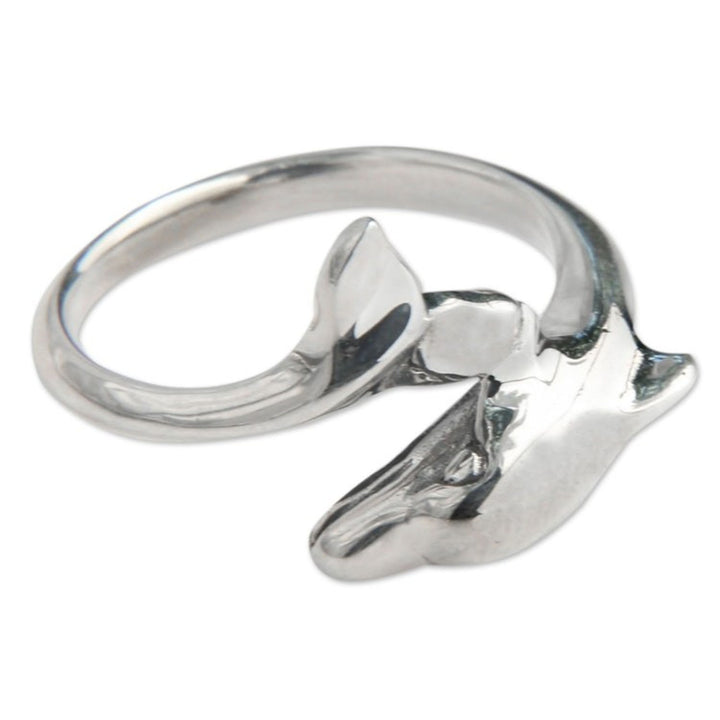 This 'Lovely Dolphin' ring by Independent Artisans is a lovely and symbolic accessory. Designed by Nyoman Rena, this sterling silver ring features a dolphin that "smiles atop this ring" and symbolizes peace and harmony. The high-polish finish adds a lovely shine. This piece captures both Balinese heritage and contemporary design, blending carving skills with metalwork.