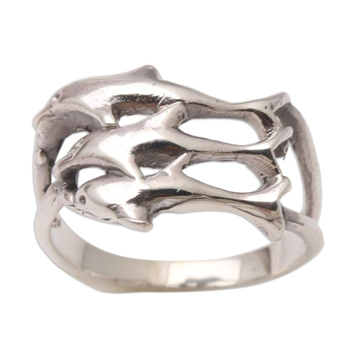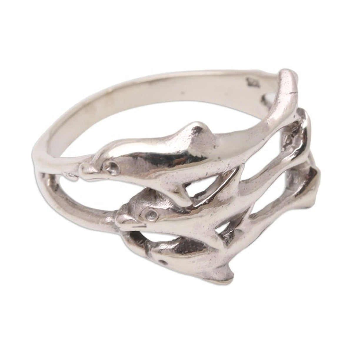 Sterling Silver Dolphin-Themed Cocktail Ring 'Synchronized Swimmers'