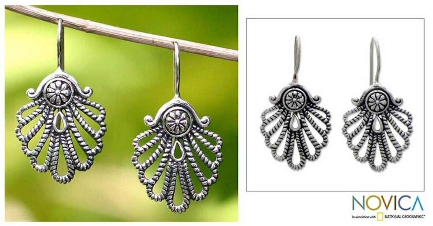 These 'Silver Fan' drop earrings by Independent Artisans are a lovely accessory. Designed by Yuniati, these sterling silver earrings feature a "daisy medallion" and are inspired by "fans from classic Indonesian dances." The combination finish adds a lovely texture. This piece is a way to carry forward her ancestors' legacy.