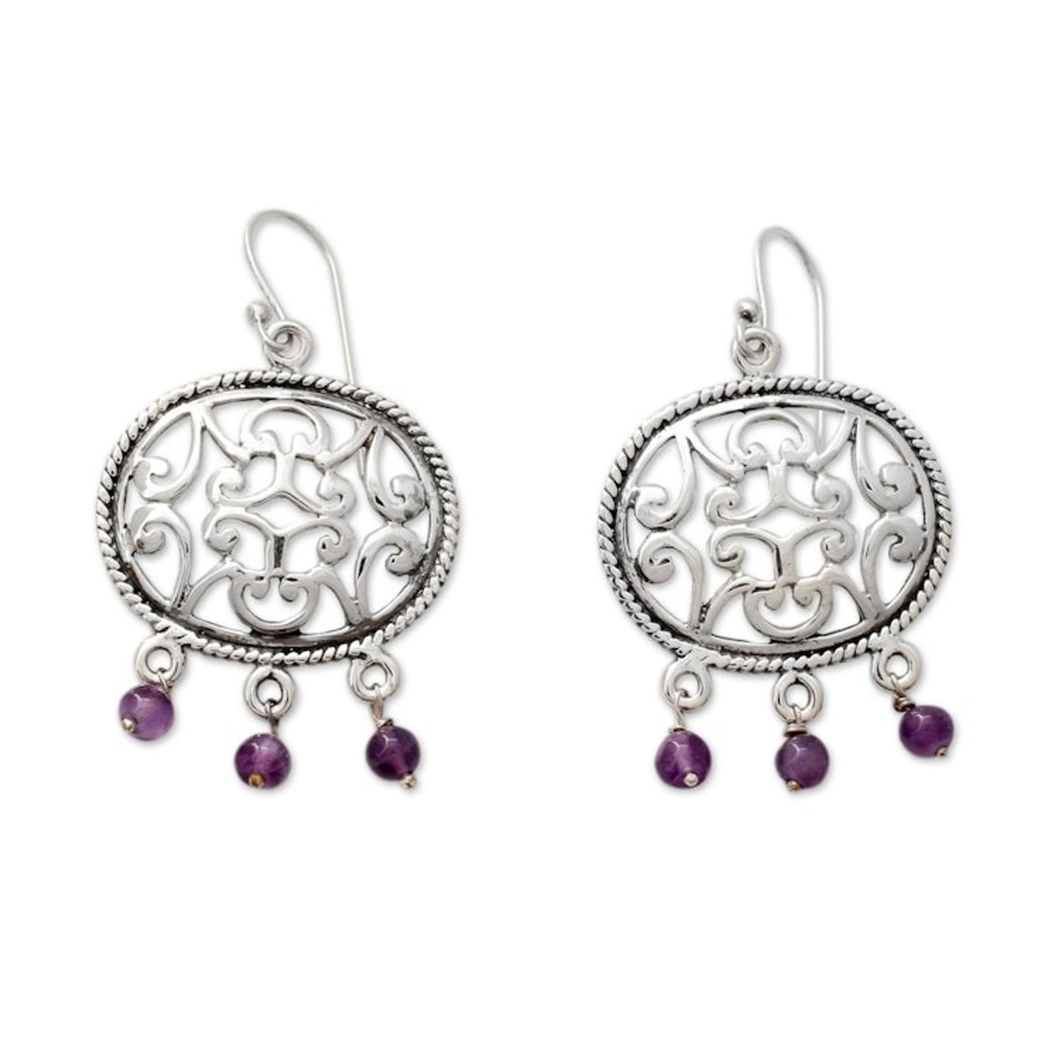 Sterling Silver Earrings Crafted by Hand with Amethysts 'Mughal Visions'