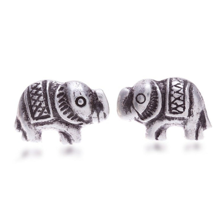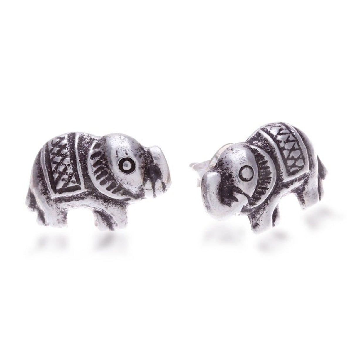 Sterling Silver Elephant Stud Earrings with Darkened Accents 'Posh Elephant'