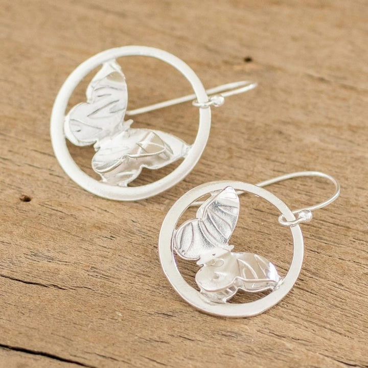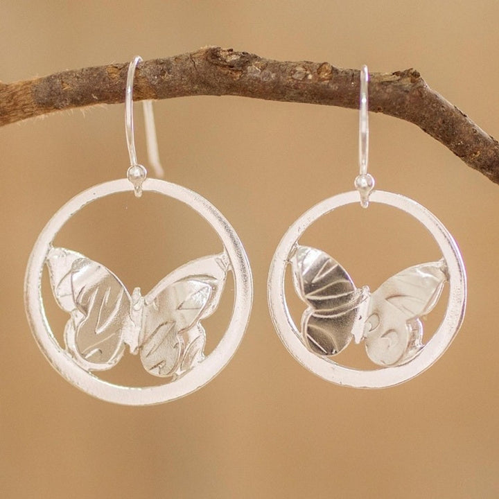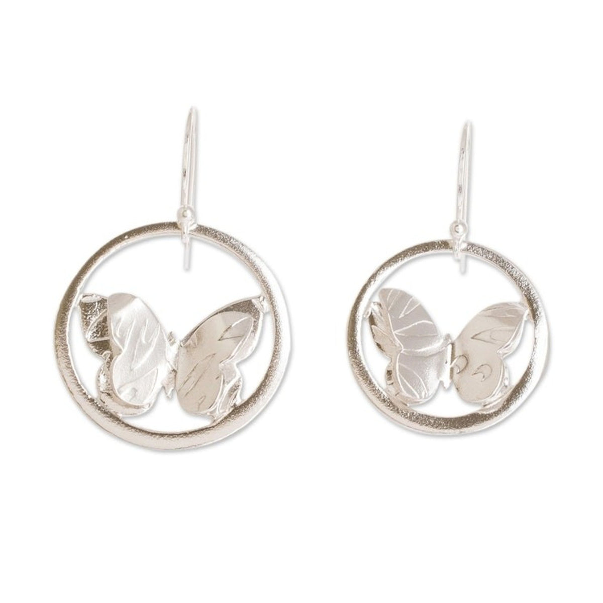 Sterling Silver Encircled Butterfly Earrings from Costa Rica 'Shimmering Flight'
