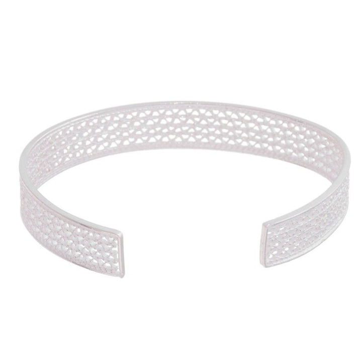 This 'Colonial Shine' cuff bracelet by Independent Artisans is an intricate and beautiful accessory. Designed by Giuliana Valz-Gen, this sterling silver cuff bracelet features "intricate sterling silver filigree work." The high-polish finish adds a lovely shine. This piece is a way to preserve ancestral techniques.