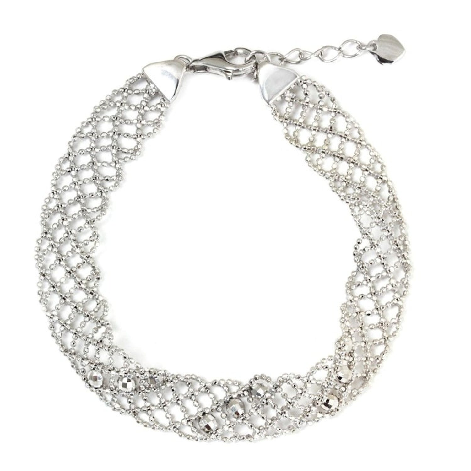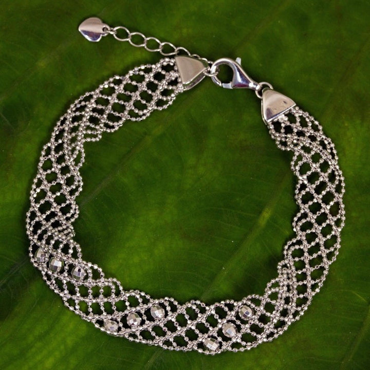 This 'Braided Lace' bracelet by Independent Artisans is a beautiful and feminine accessory. Designed by Angels, this sterling silver bracelet features "five diminutive ball chains" that come together to create a "lacy braid." The high-polish finish adds a lovely shine. This piece is a way to continue the family legacy of crafting intricate silver chains.