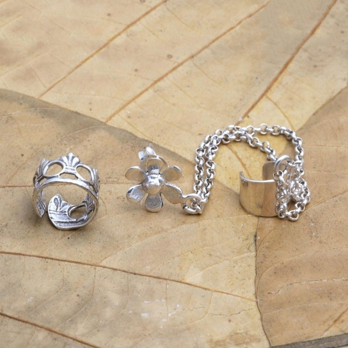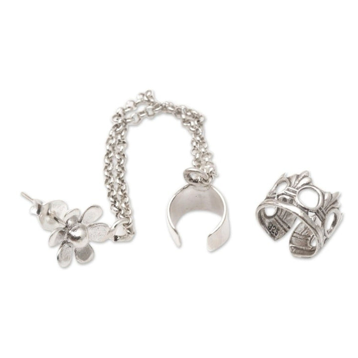Sterling Silver Floral Themed Ear Cuff Earrings Pair 'Blossom Queen'
