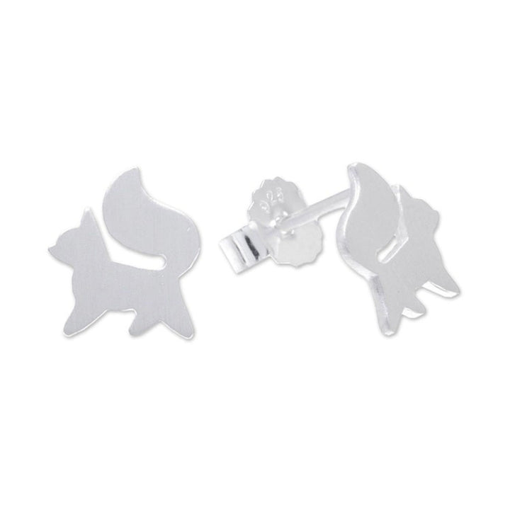 Sterling Silver Fox Stud Earrings from Thailand 'Fox Poise'