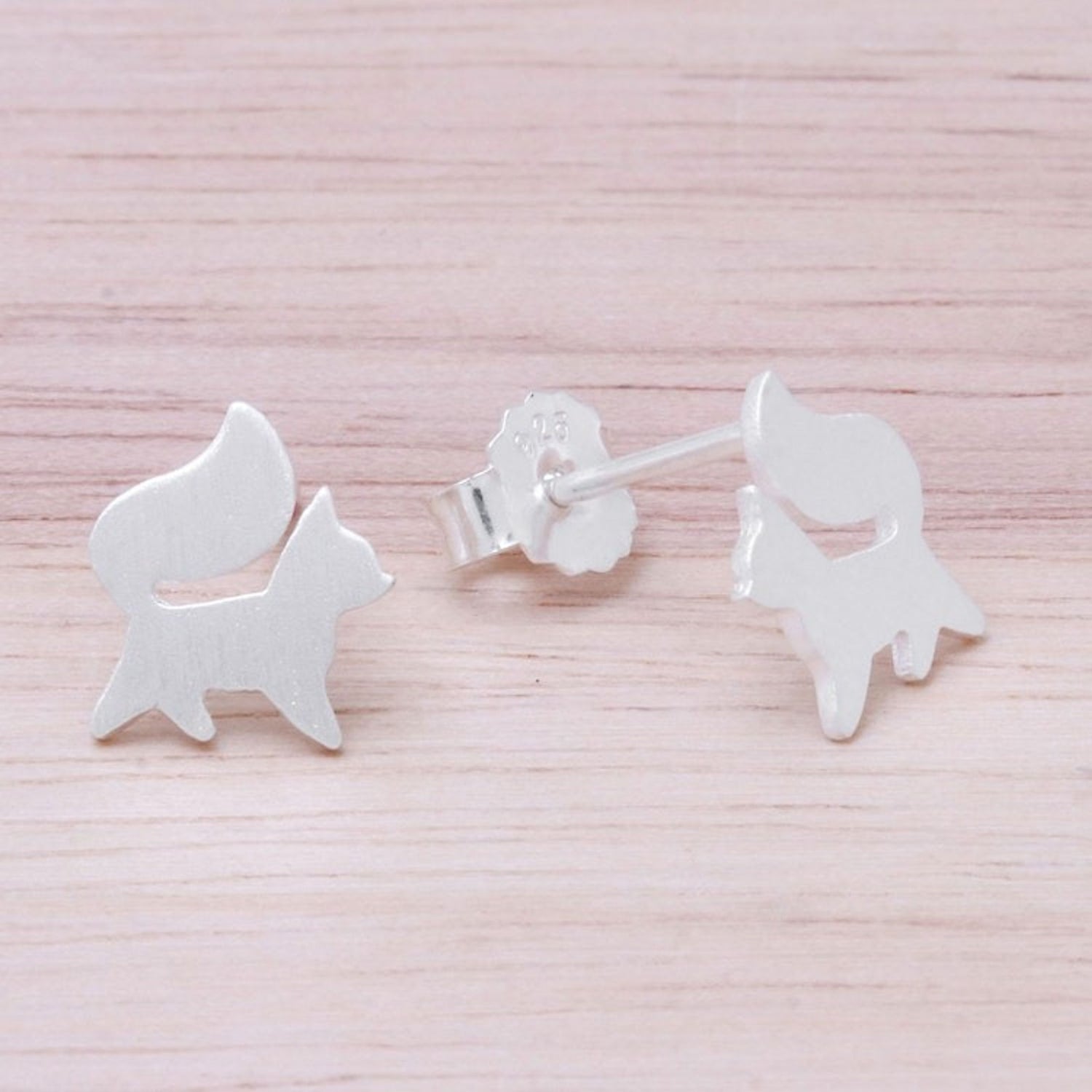 These 'Fox Poise' sterling silver fox stud earrings by Independent Artisans are a charming and stylish accessory. Designed by Jantana, these sterling silver stud earrings feature two foxes that "strut with poise." The brushed-satin finish adds a lovely texture. This piece is a way to share joy, beauty, and craftsmanship with the world.