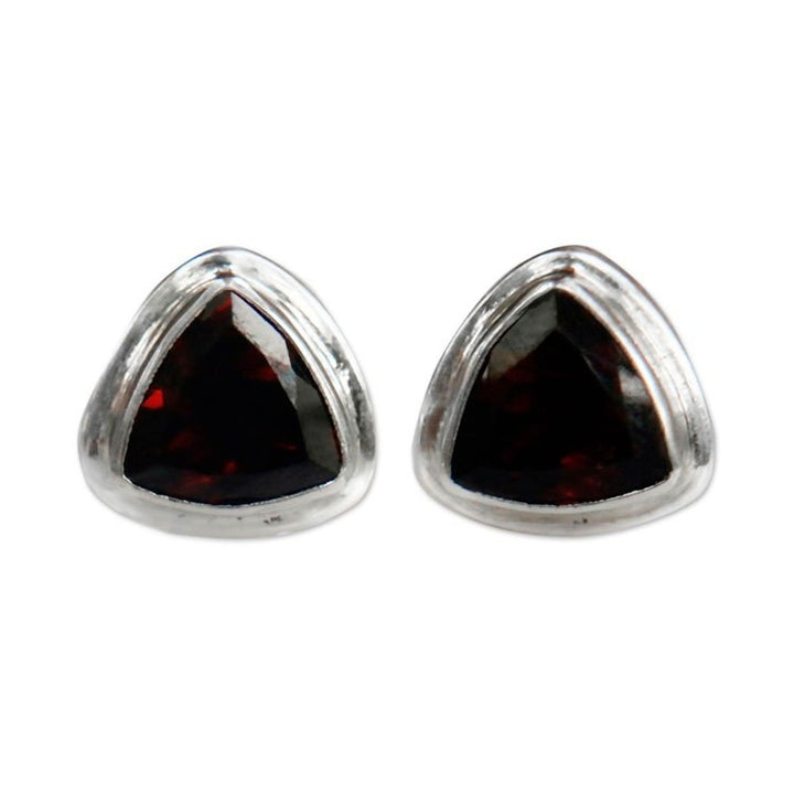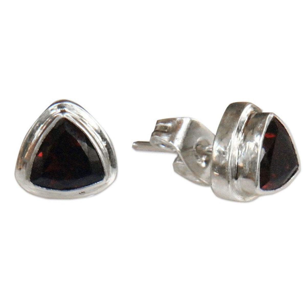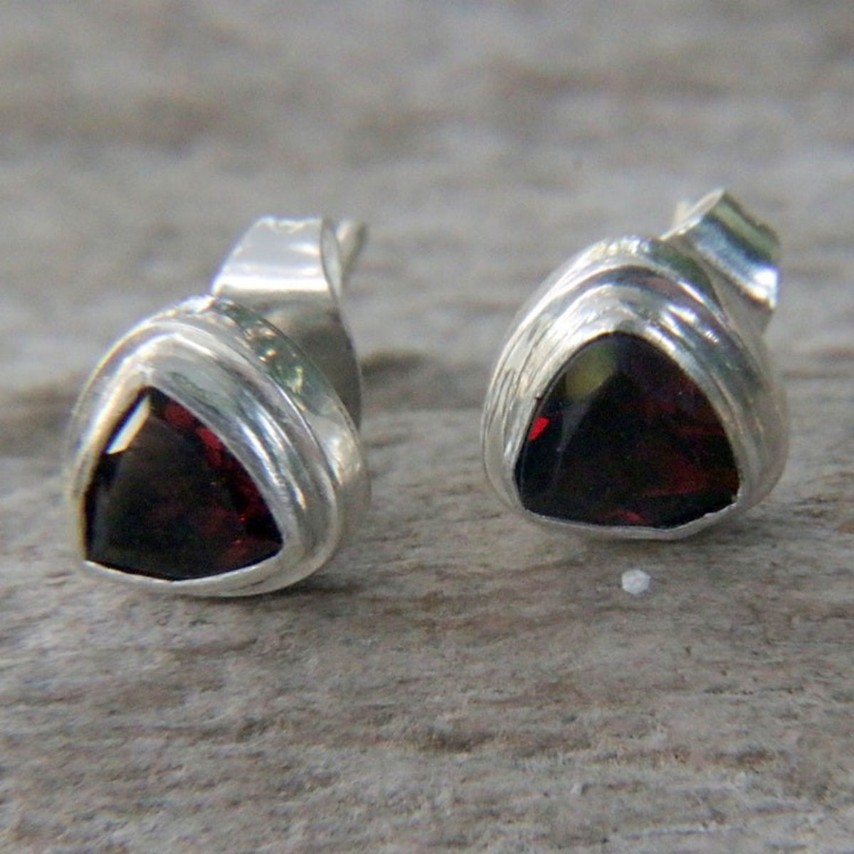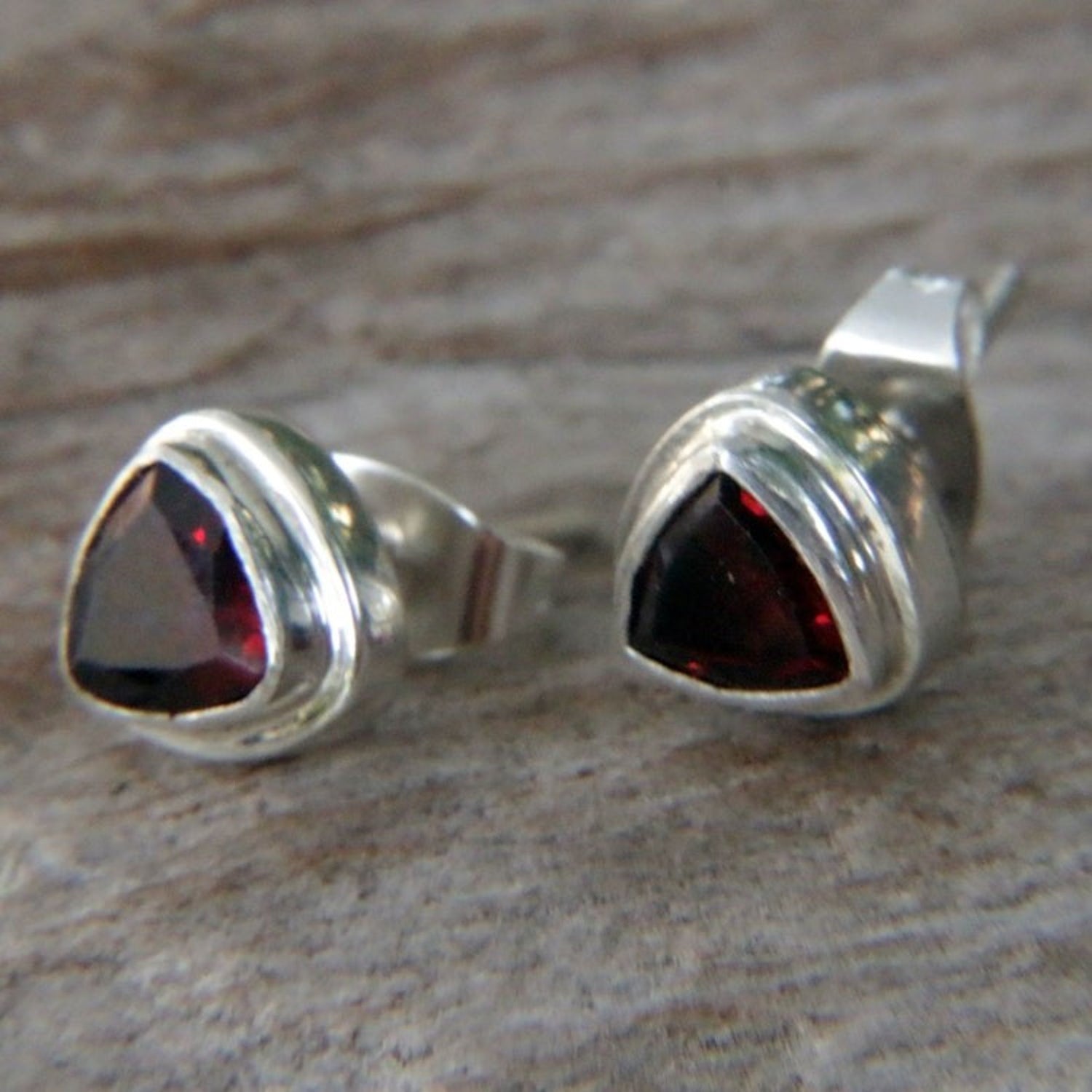Sterling Silver Garnet Stud Earrings 'Crimson Trinity'