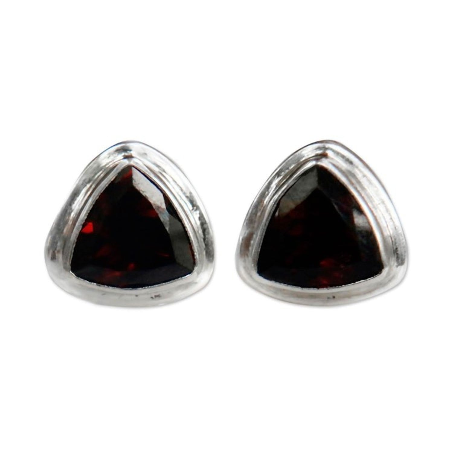 These 'Crimson Trinity' garnet stud earrings by Independent Artisans are an elegant and creative accessory. Designed by Kenari, these sterling silver earrings are crafted by hand with "faceted garnet, the birthstone of January." This piece is a way to ensure Balinese silver artistry continues to flourish for future generations.