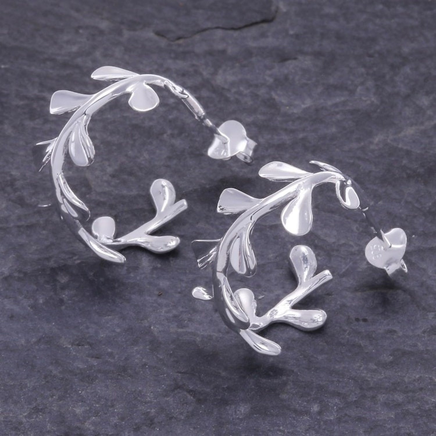 Sterling Silver Half-Hoop Olive Earrings Crafted in Thailand 'Silver Olives'