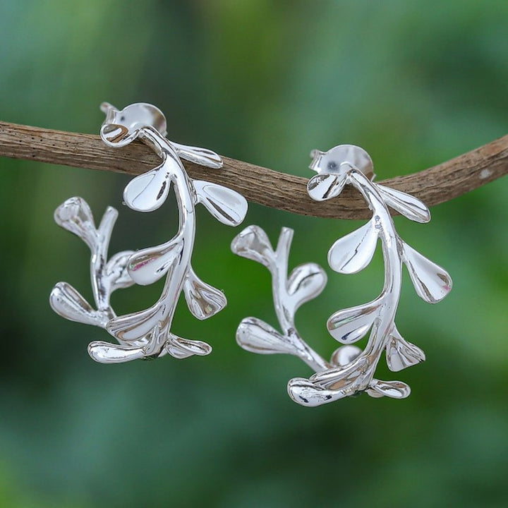 These 'Silver Olives' half-hoop olive earrings by Independent Artisans are a high-quality and luminous accessory. Designed by Lalana, these sterling silver earrings draw inspiration from olive branches, which are "symbols of peace." The high-polish finish adds a lovely shine. This piece is a way to create sustainable livelihoods for artisans, and to blend traditional designs with contemporary style.