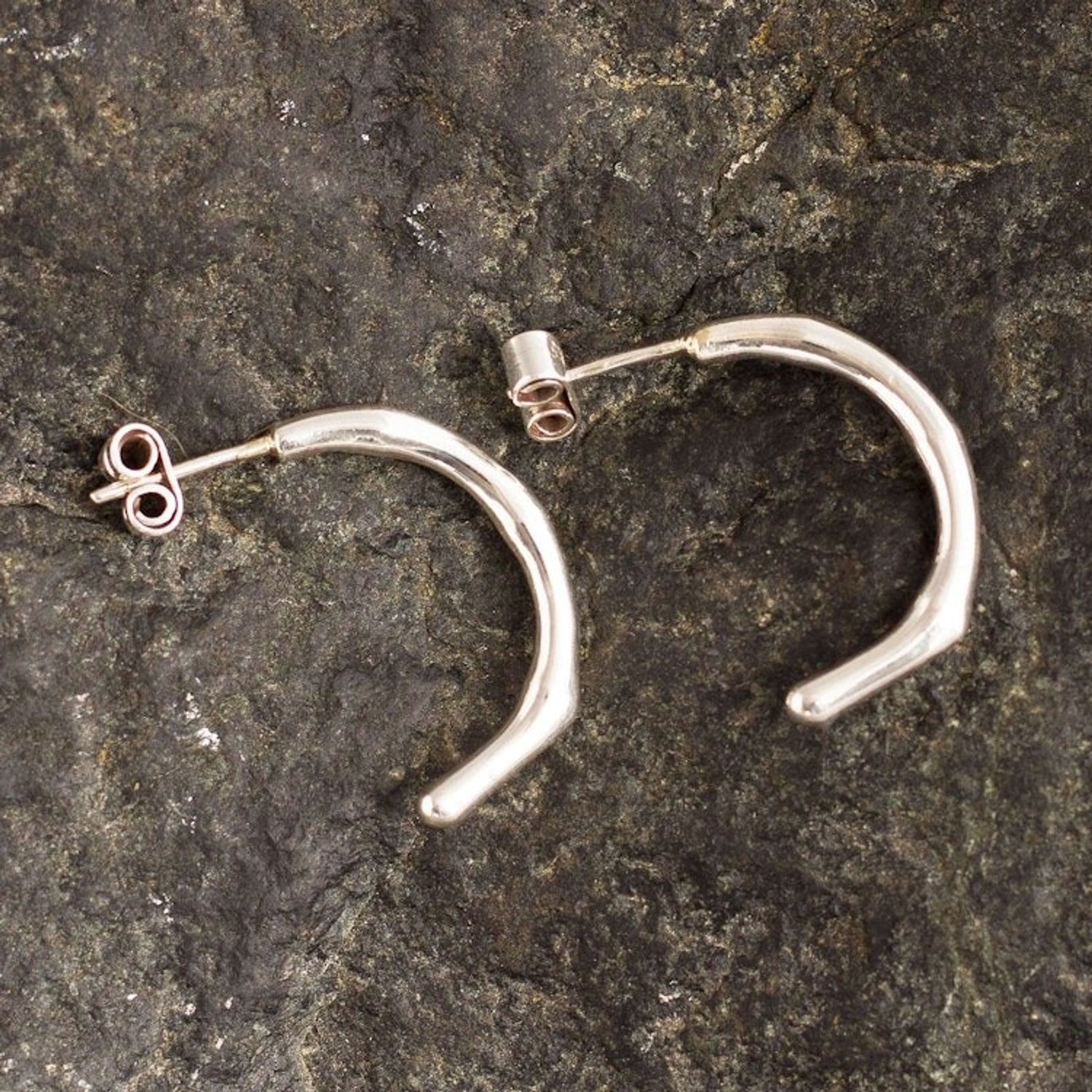 Sterling Silver Half Hoop Post Earrings from Peru 'Minimus'