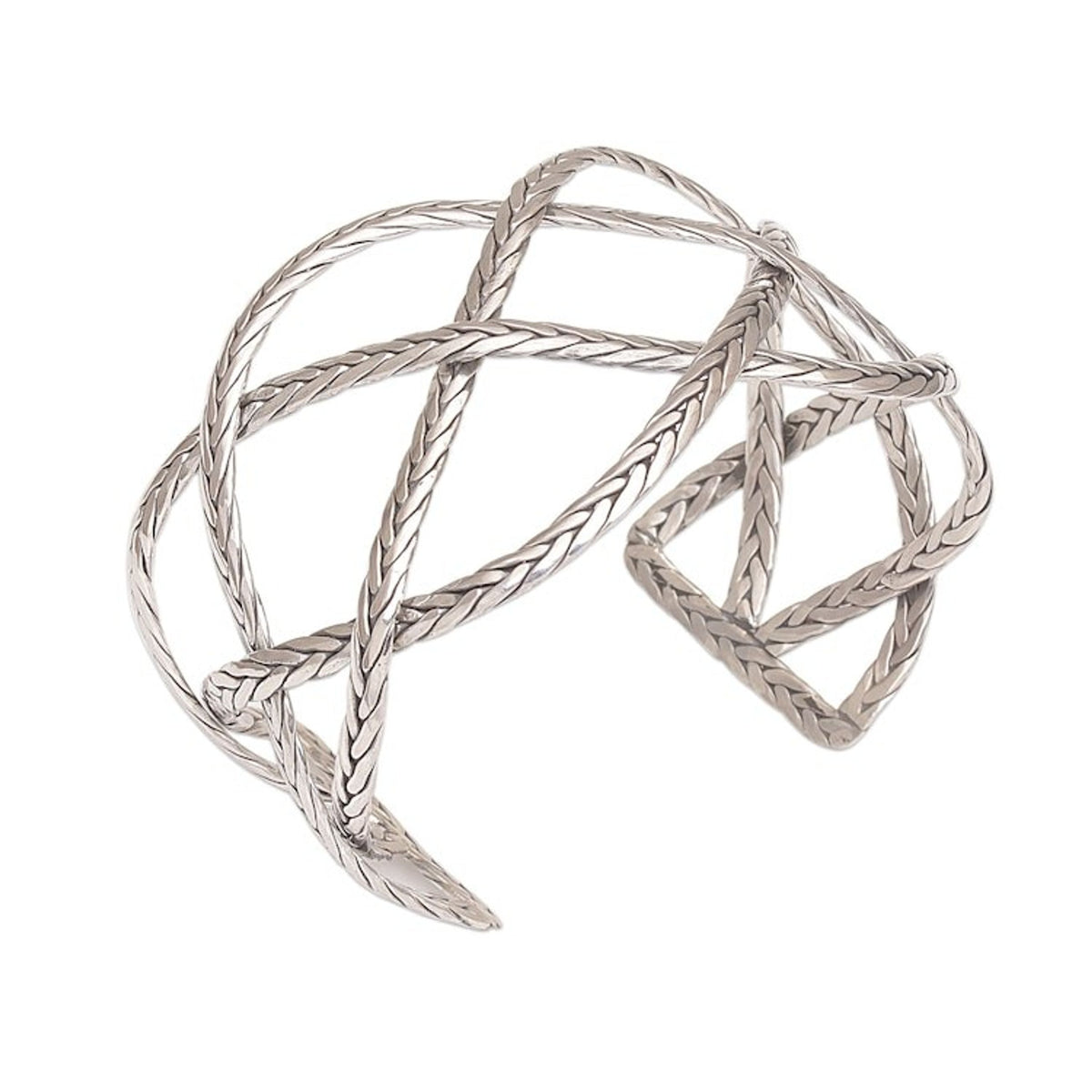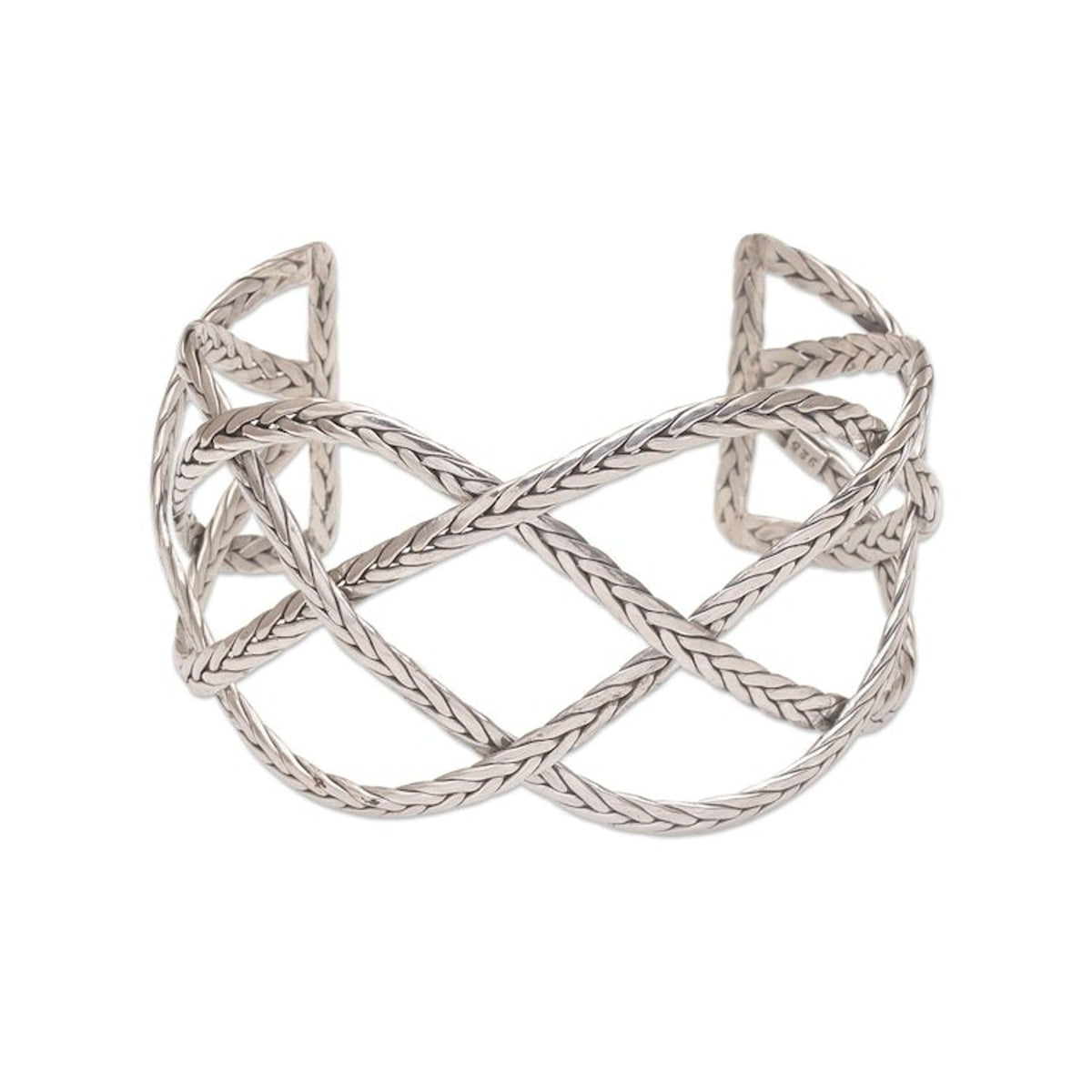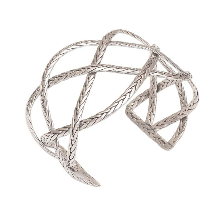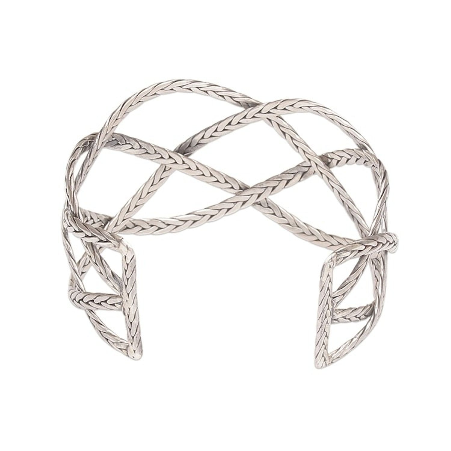 Sterling Silver Handcrafted Cuff Bracelet with Braided Motif 'Woven Road'