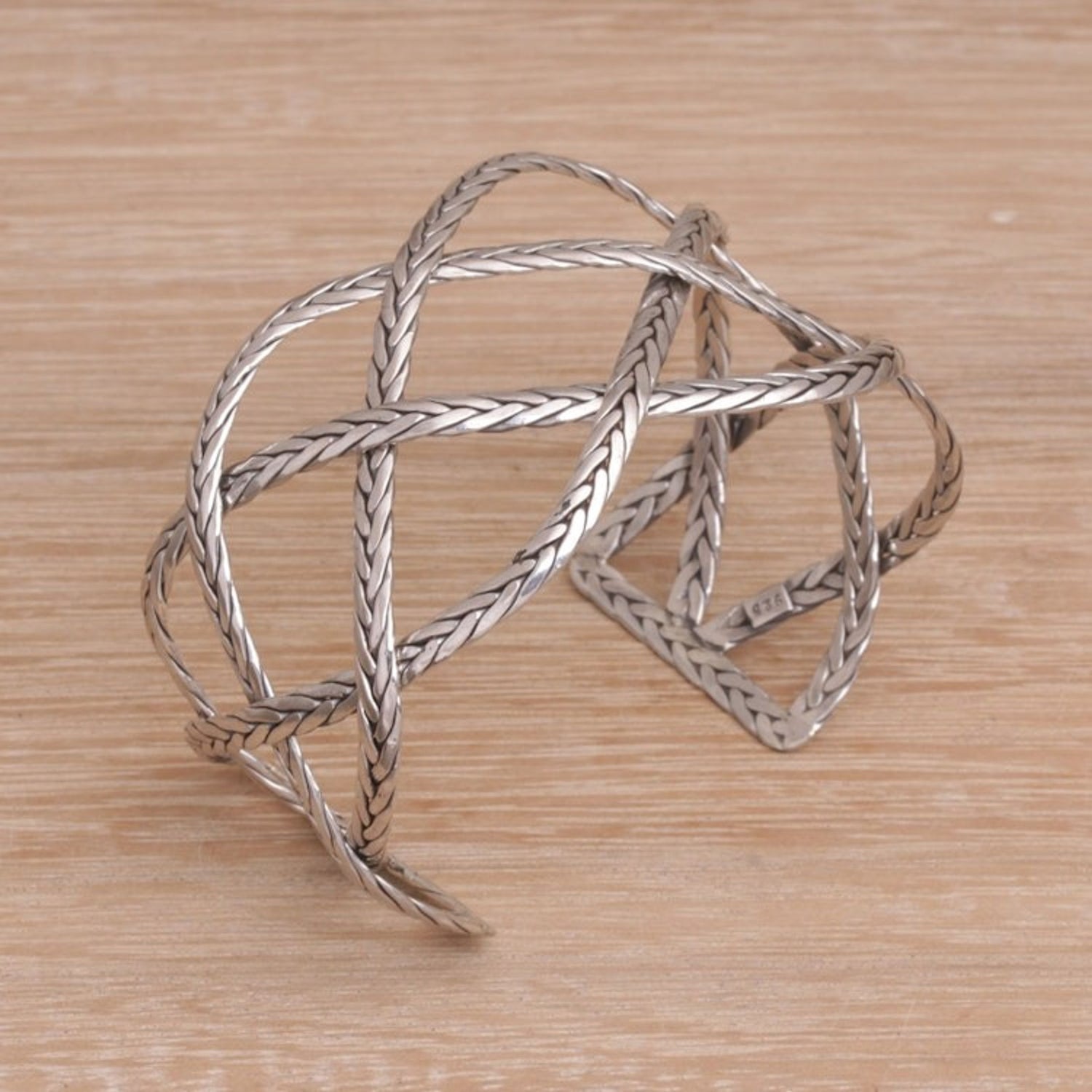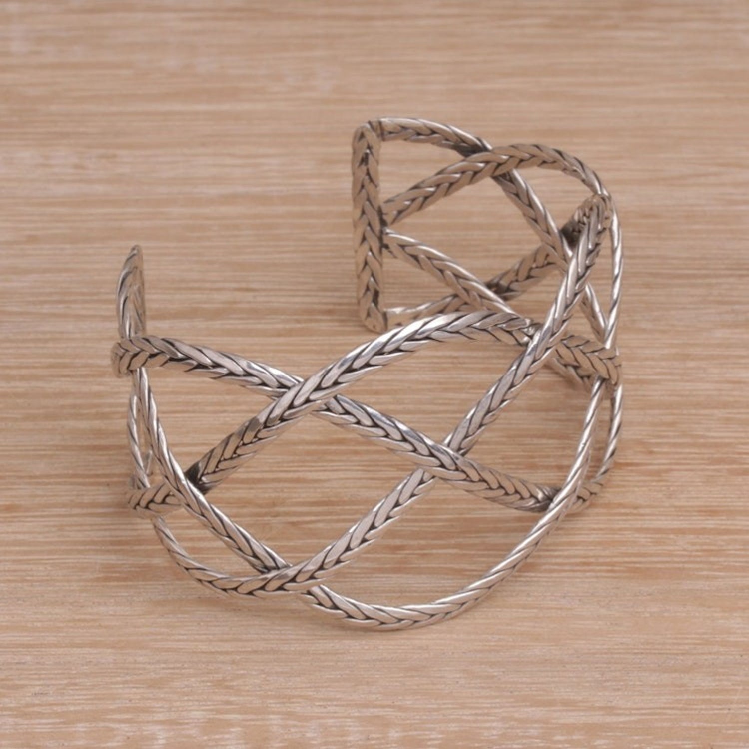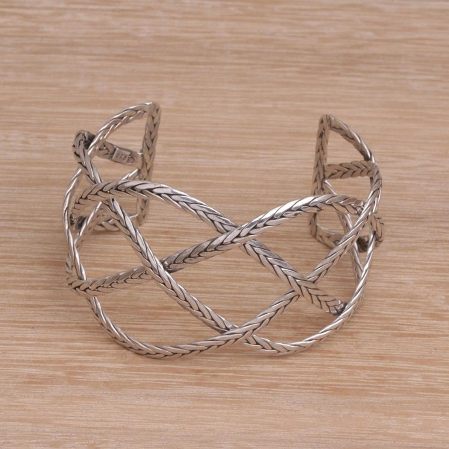 Sterling Silver Handcrafted Cuff Bracelet with Braided Motif 'Woven Road'