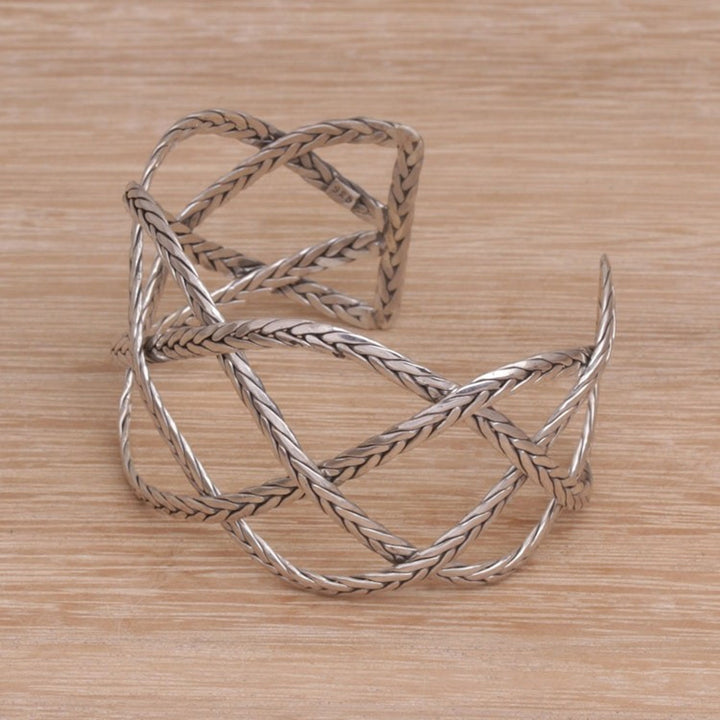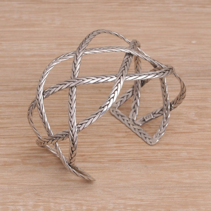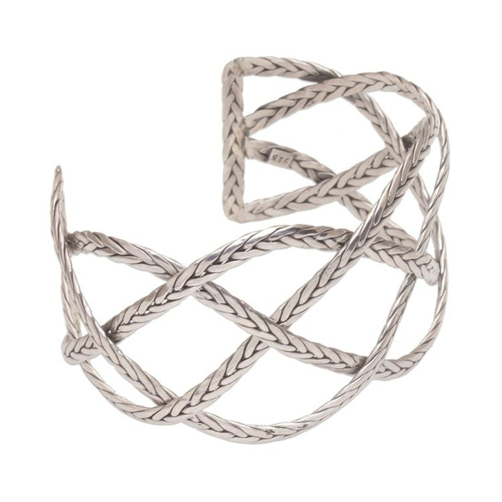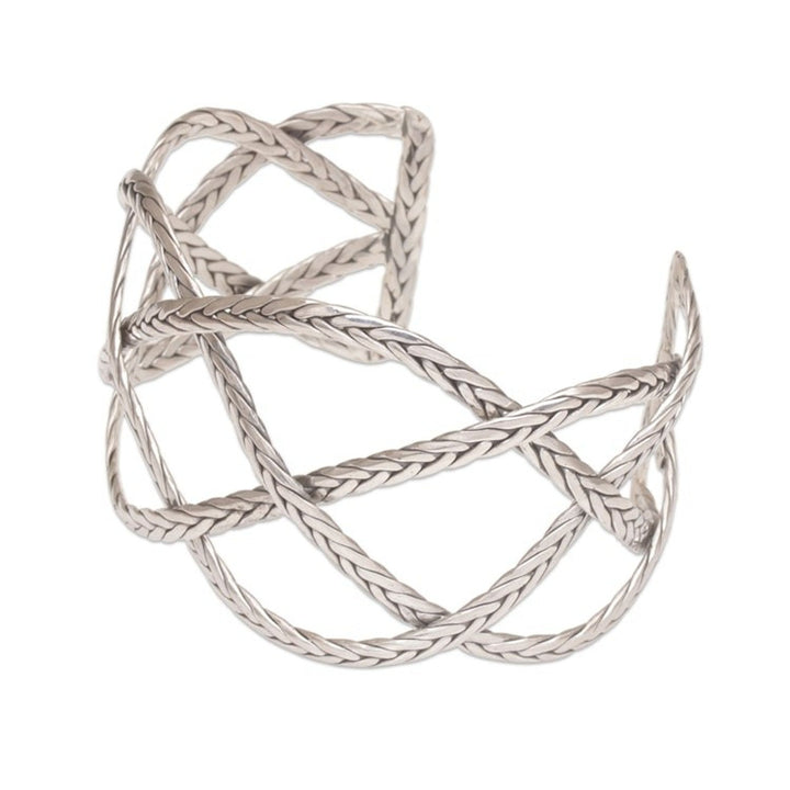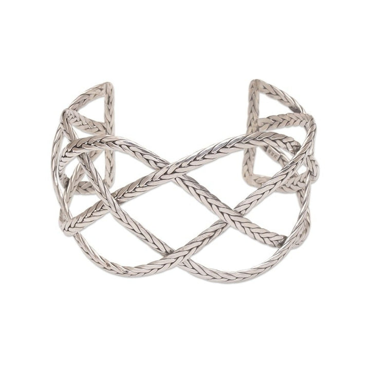 This 'Woven Road' sterling silver handcrafted cuff bracelet by Independent Artisans is a strong and elegant accessory. Designed by Yuniati, this sterling silver cuff bracelet features "four interconnected sterling silver lengths with a braided motif." The combination finish adds a lovely texture. This piece is a way to carry forward her ancestors' legacy.