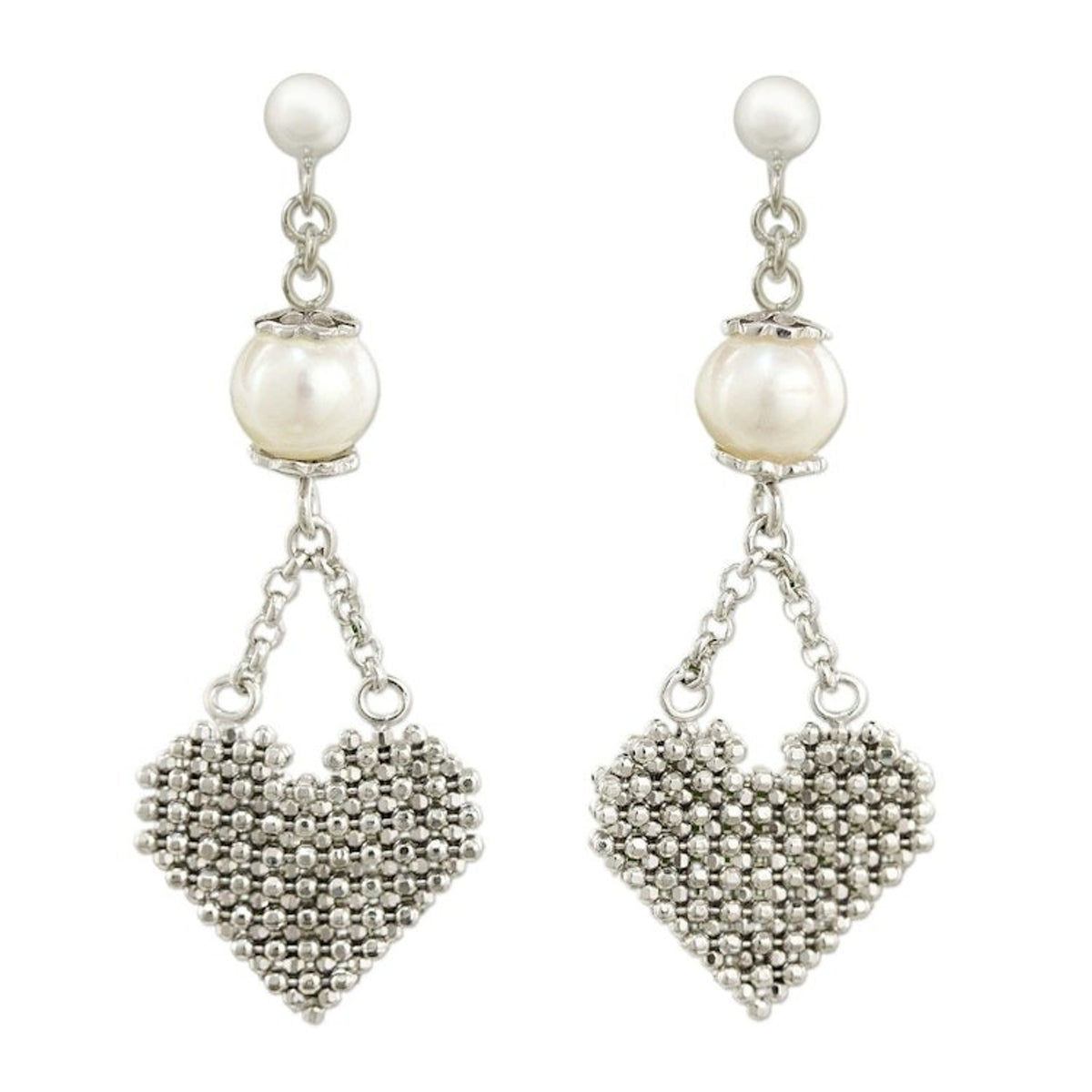 Sterling Silver Heart Earrings with Pearls Thai Jewelry 'Pure Heart'