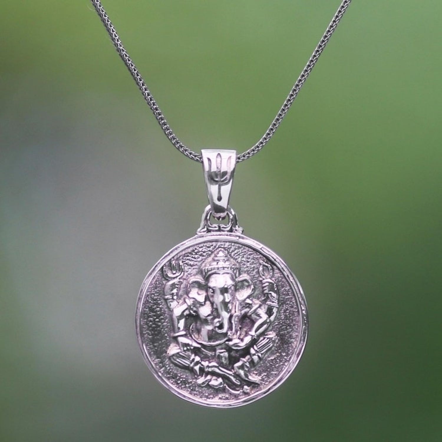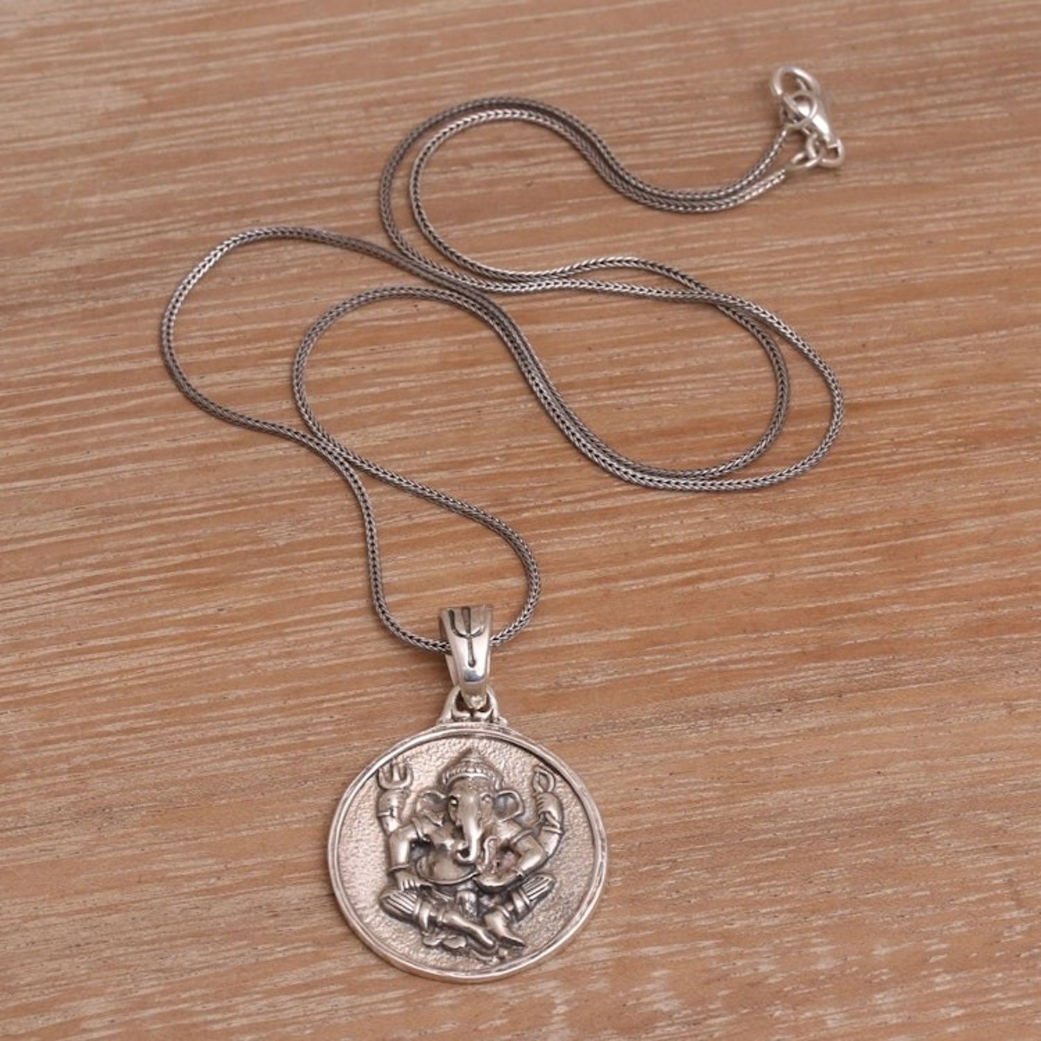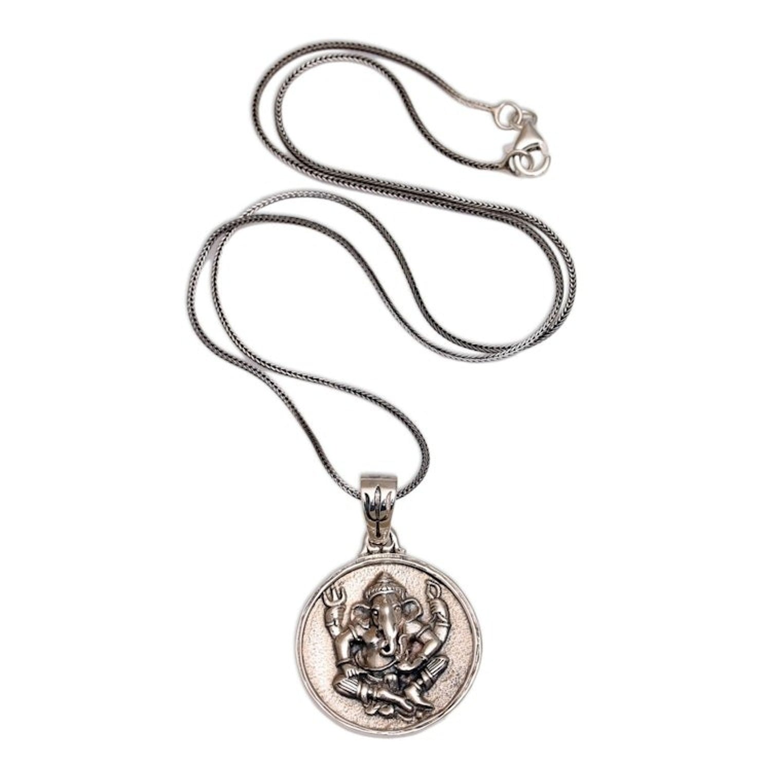 Sterling Silver Hindu Pendant Necklace 'Gracious Ganesha'