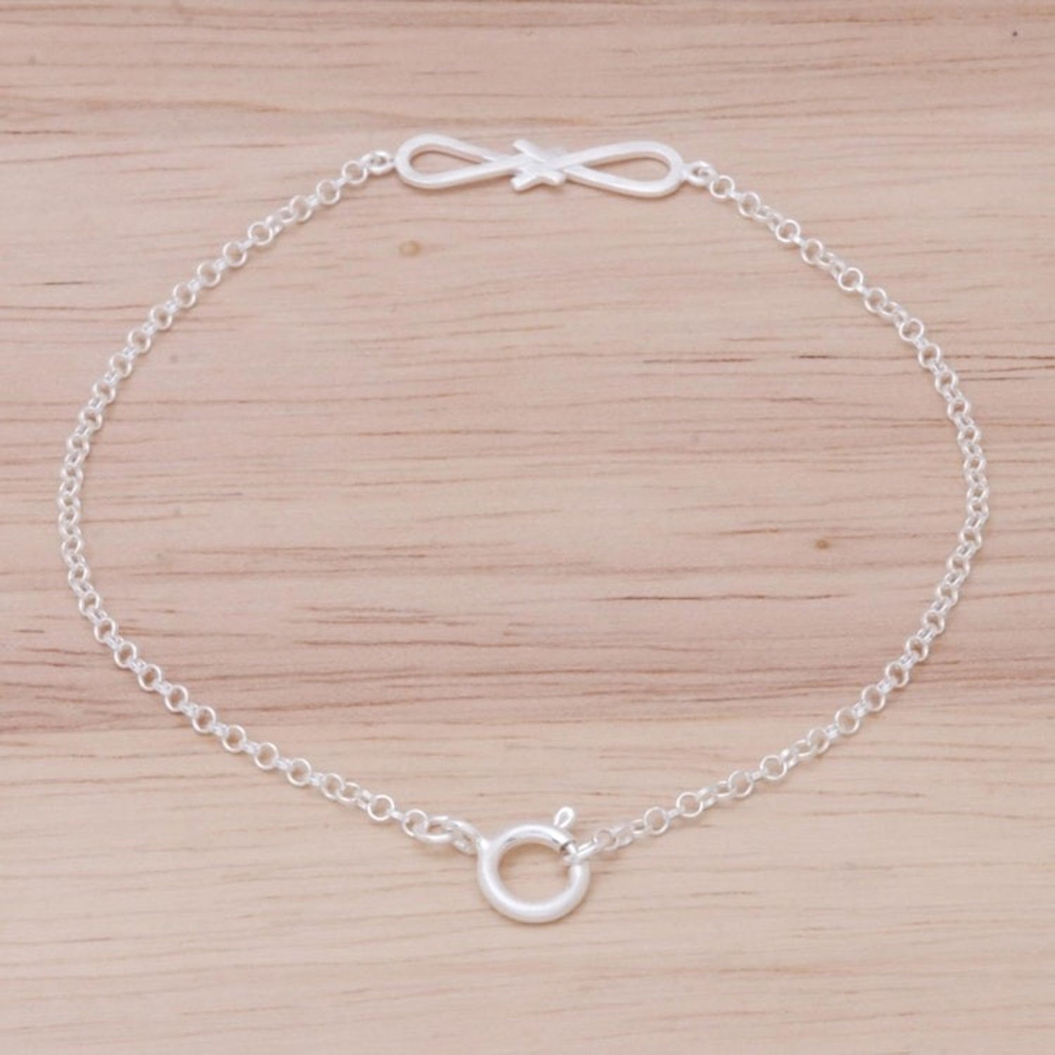 This 'Interlinked Infinity' sterling silver infinity pendant bracelet from Thailand by Independent Artisans is an elegant and meaningful accessory. Designed by Sarote, this sterling silver bracelet features a pendant that is an infinity symbol formed by "two interlinked ribbons." The brushed-satin finish adds a lovely texture. This piece is a way to bring joy to those who wear his jewelry.