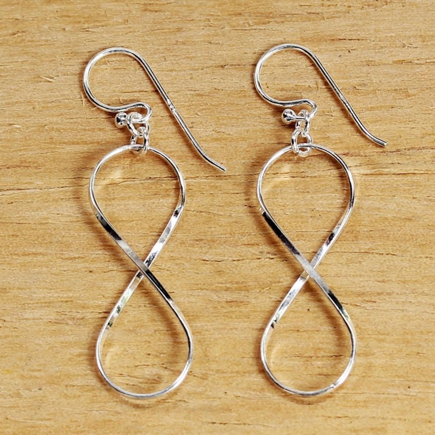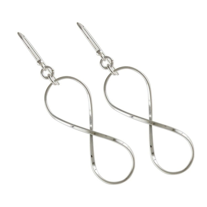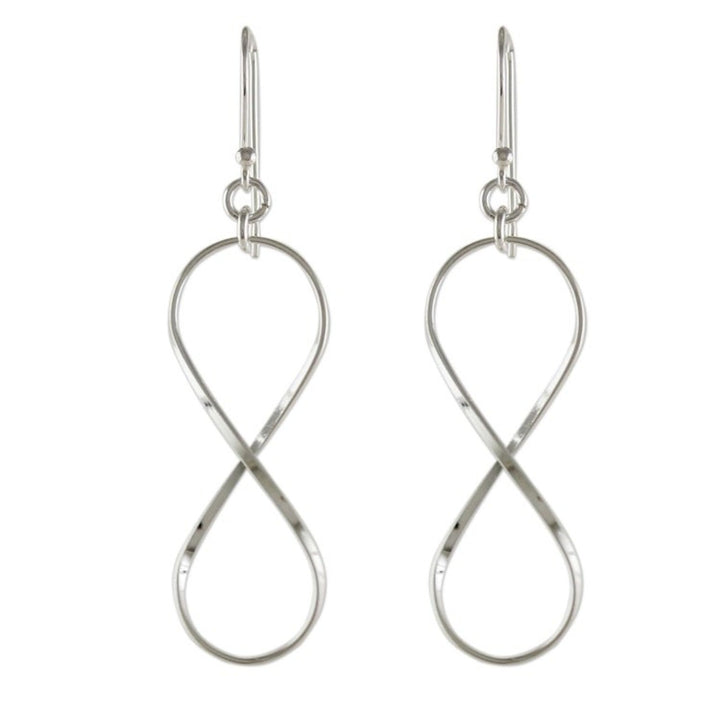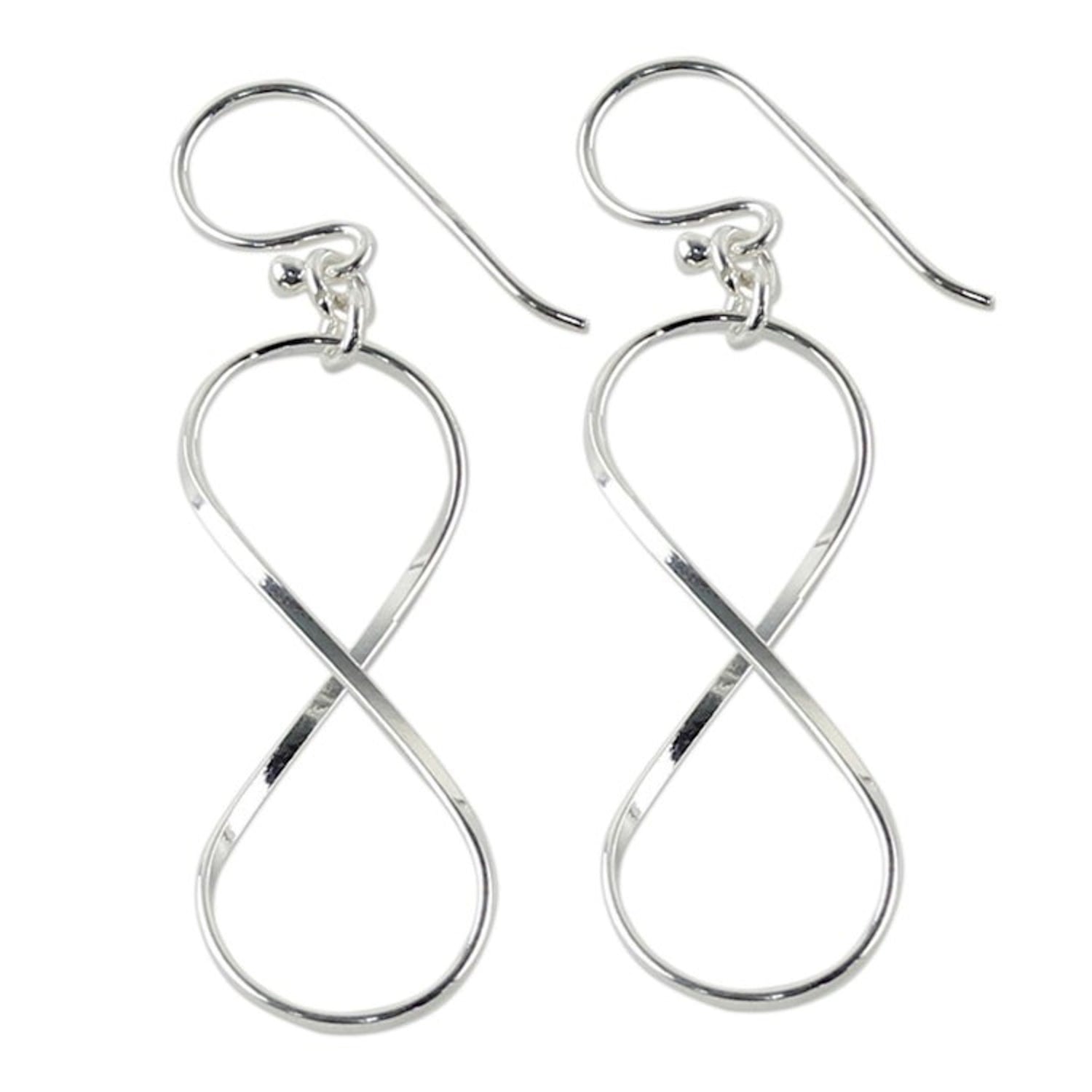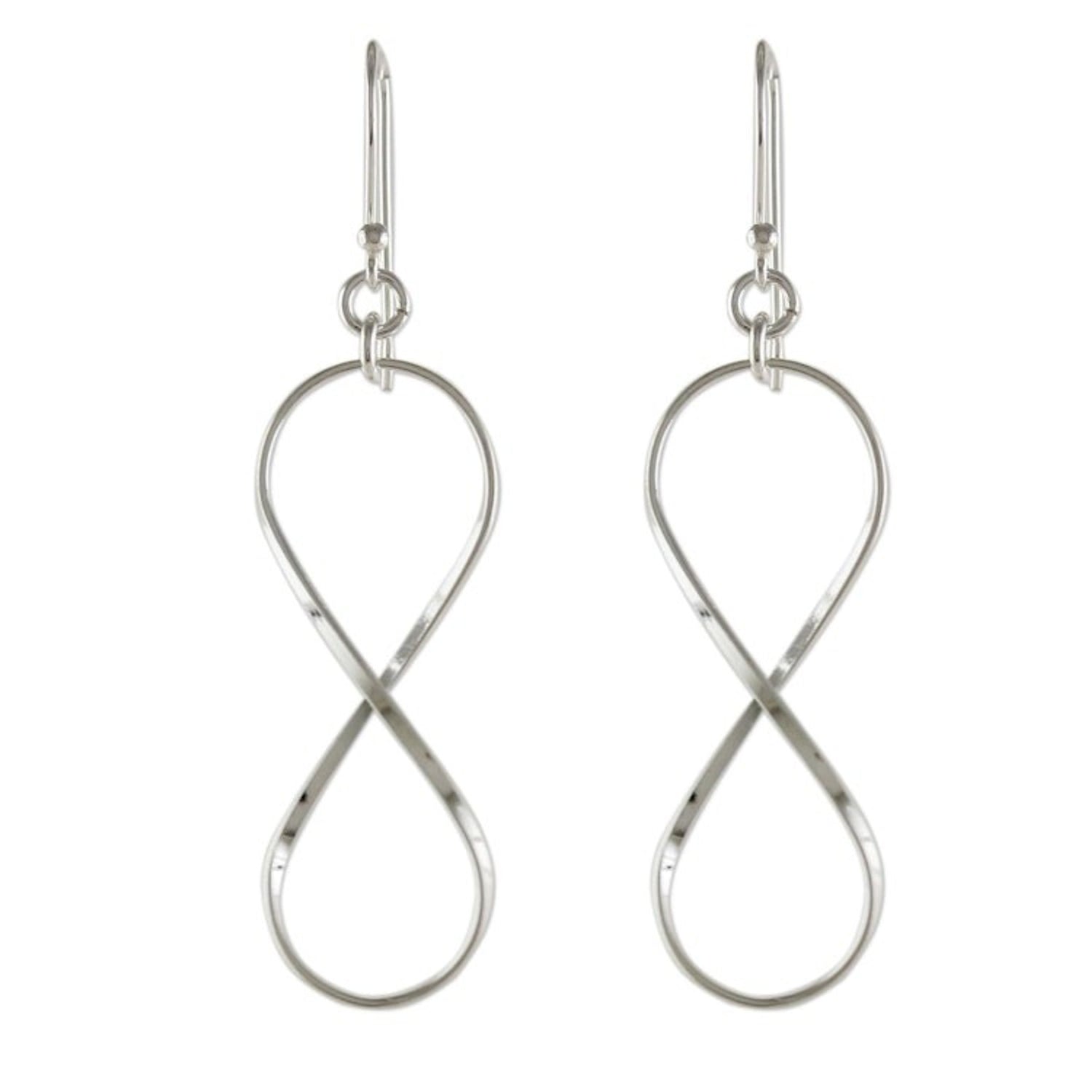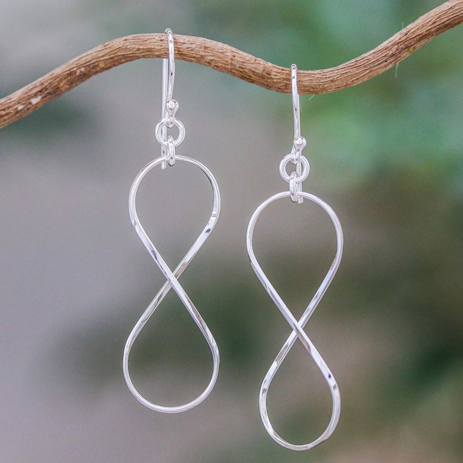These 'Infinite Charm' sterling silver infinity symbol Thai dangle earrings by Independent Artisans are a wonderful and charming accessory. Designed by Pichaya, these sterling silver earrings are in the shape of infinity symbols with a high-polish finish. This piece is a way to blend contemporary simplicity with echoes of the past.