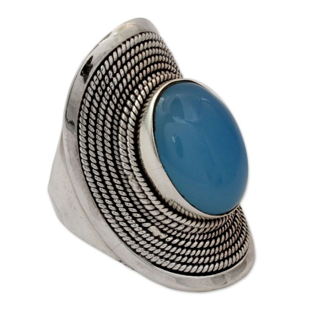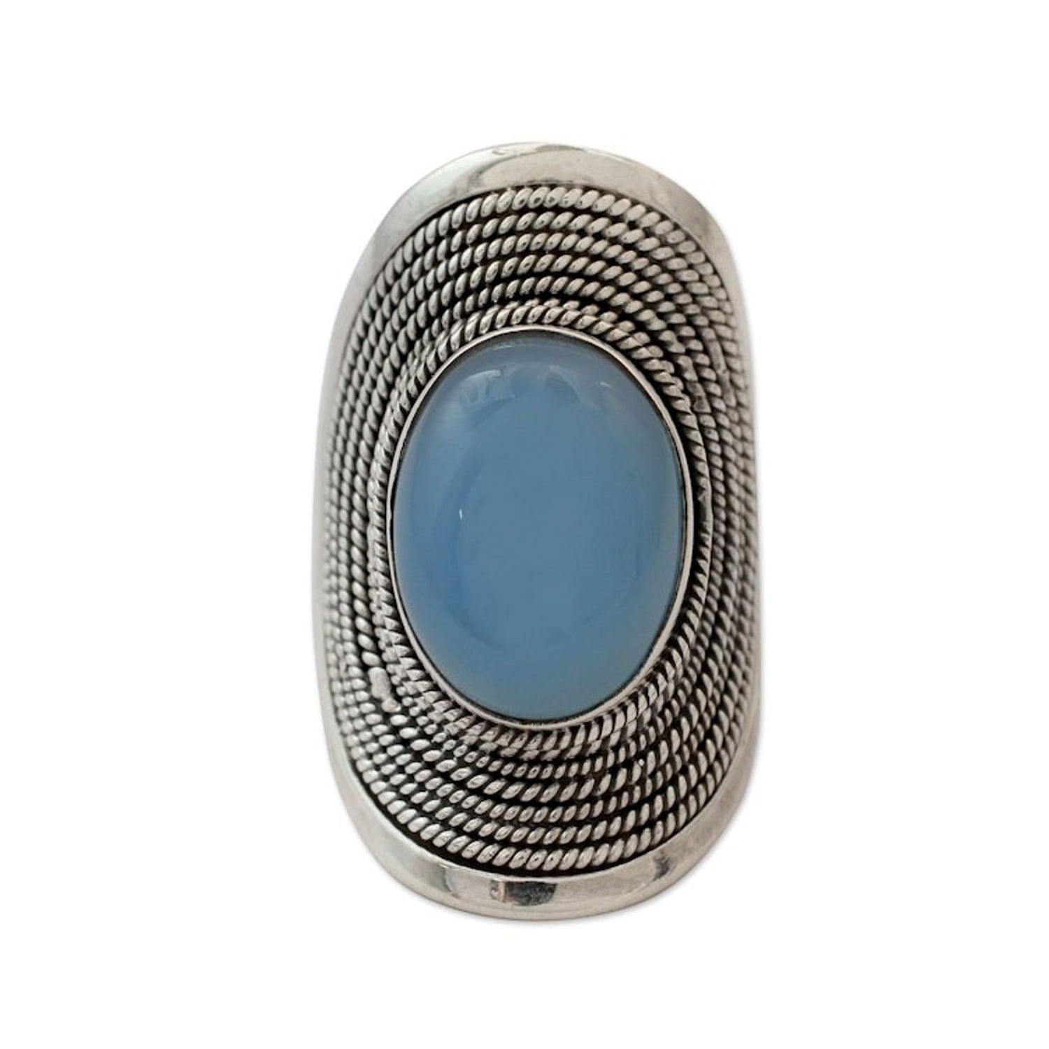Sterling Silver Jewelry Chalcedony Ring from India 'Jaipur Skies'