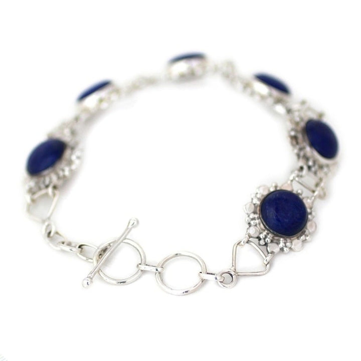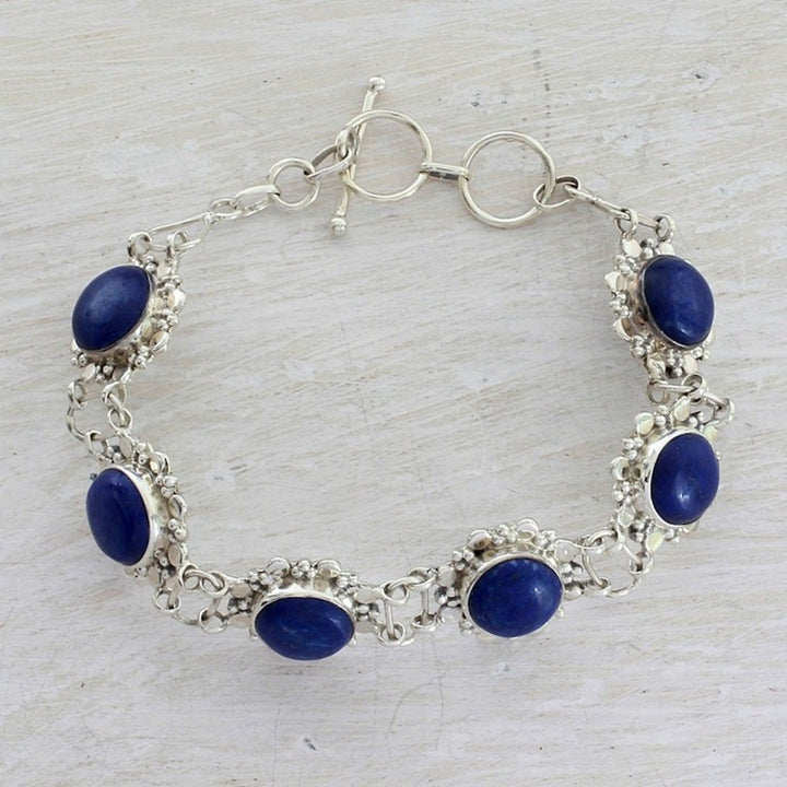 Sterling Silver Lapis Lazuli Link Bracelet from India 'Nighttime Glamour'
