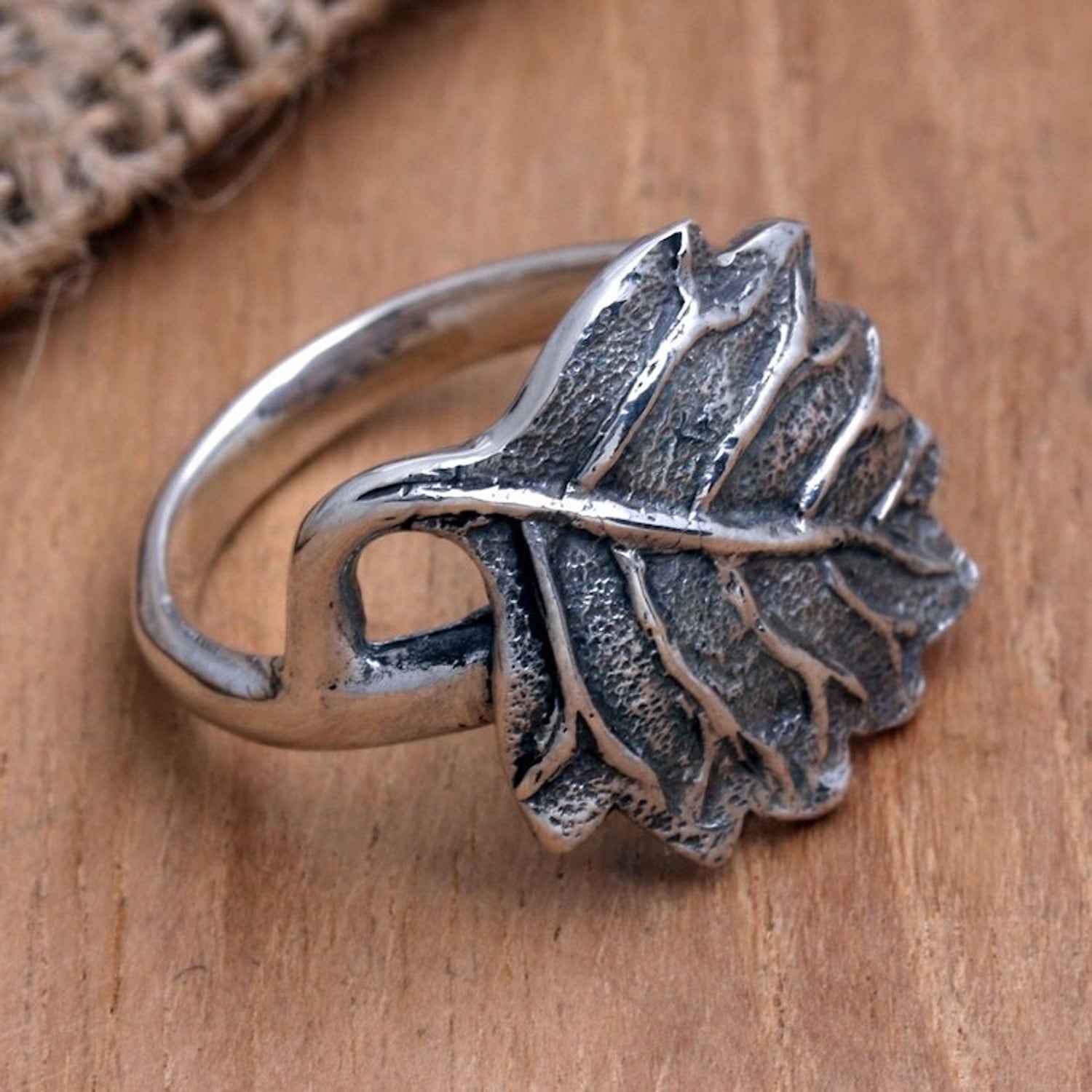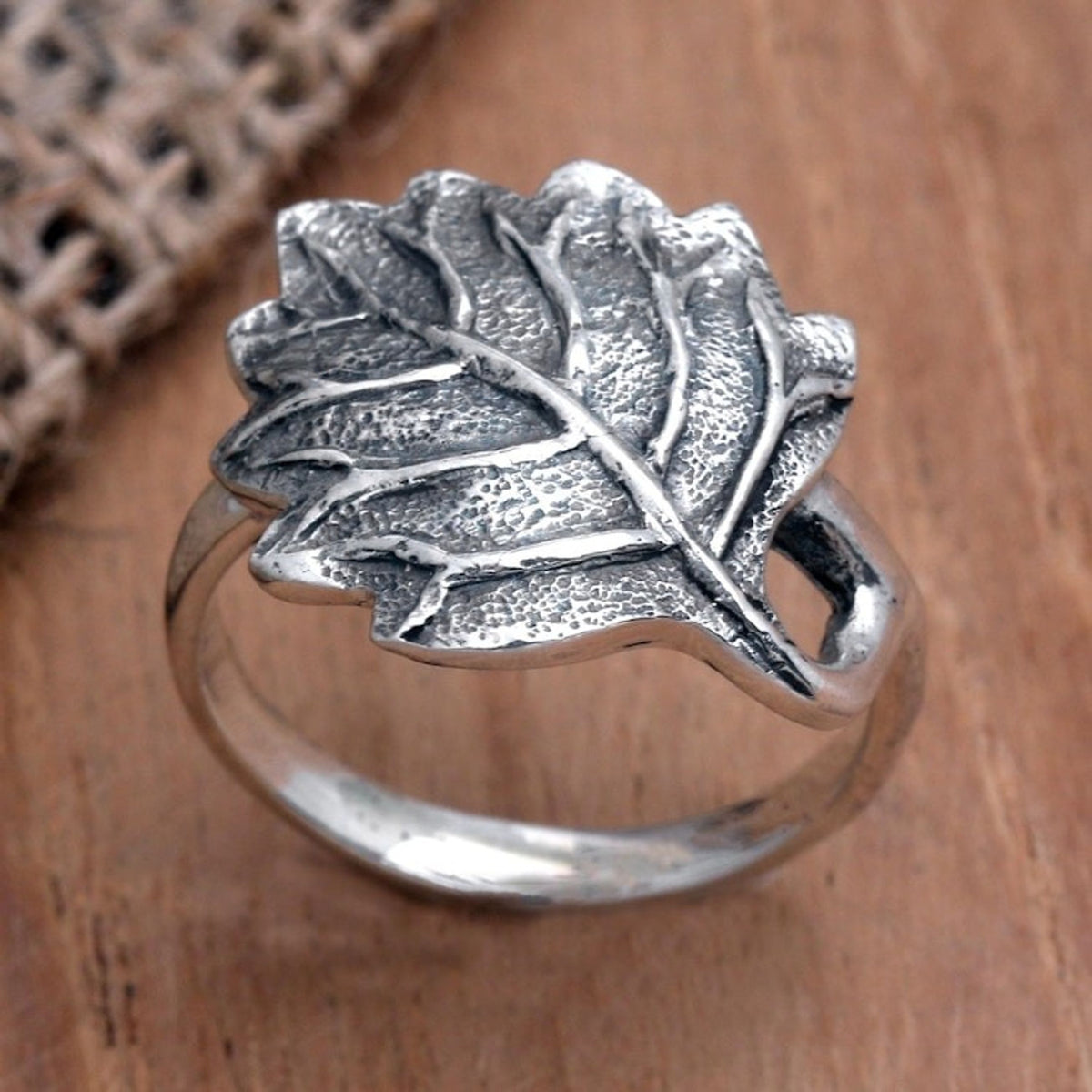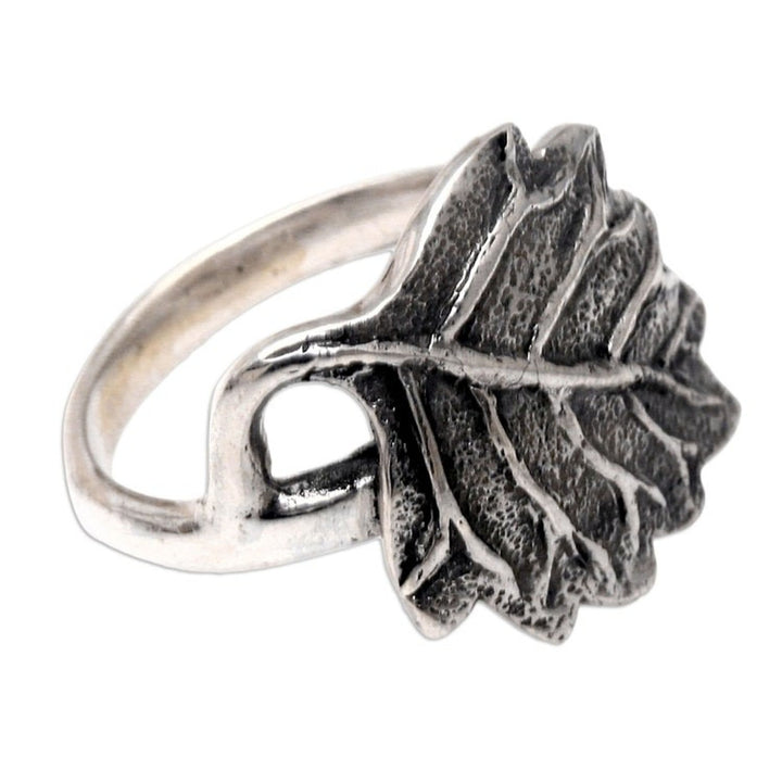 Sterling Silver Leaf-Motif Cocktail Ring 'Autumnal Melody' This 'Autumnal Melody' cocktail ring by Independent Artisans is a pretty and polished piece from Balinese artisan Nyoman Rena. As a third-generation artisan, Rena masterfully blends traditional craftsmanship with contemporary design, as seen in this handcrafted sterling silver leaf. The lifelike vein pattern, engraved with a combination finish, gives the ring a shimmering, autumnal charm. This ring is a testament to Rena's ability to capture the essence of nature and translate it into a wearable work of art, making it a perfect statement piece for any occasion.