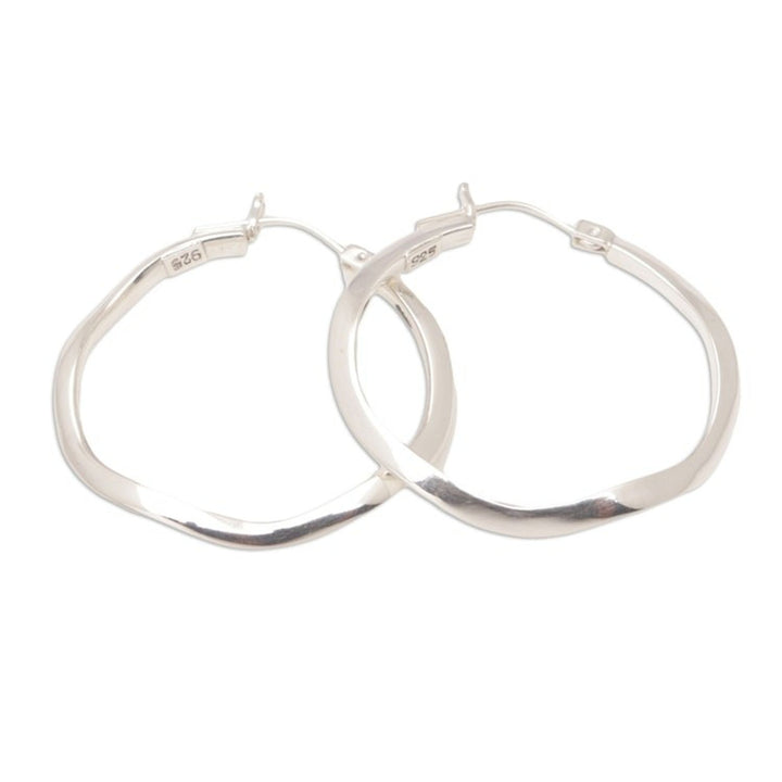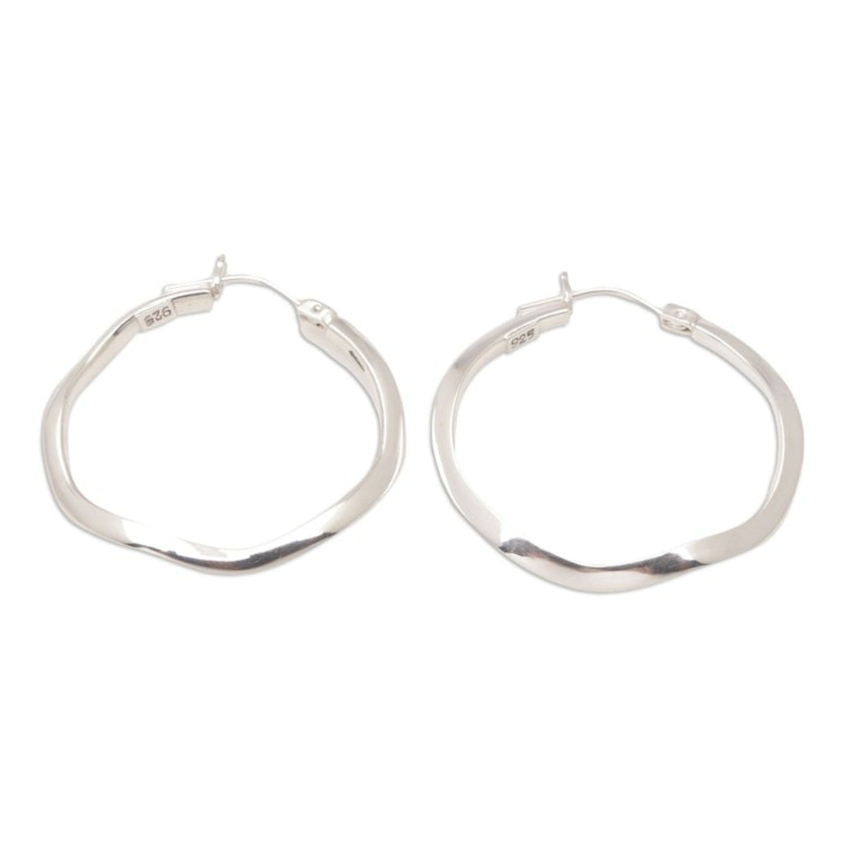 Sterling Silver Modern Hoop Earrings in a High Polish Finish 'Trendy Aura' These 'Trendy Aura' hoop earrings by Independent Artisans are a perfect accessory for any occasion, handcrafted by Balinese designer Yuniati. Made from sterling silver with a dazzling high polish finish, these earrings are a modern and trendy piece that will captivate anyone. Yuniati’s journey from a newcomer to a skilled silversmith is a testament to her dedication and creative passion, and these earrings are a beautiful expression of Balinese artistry that balances traditional motifs with modern appeal.