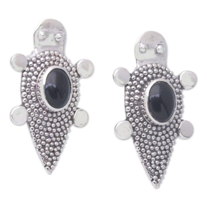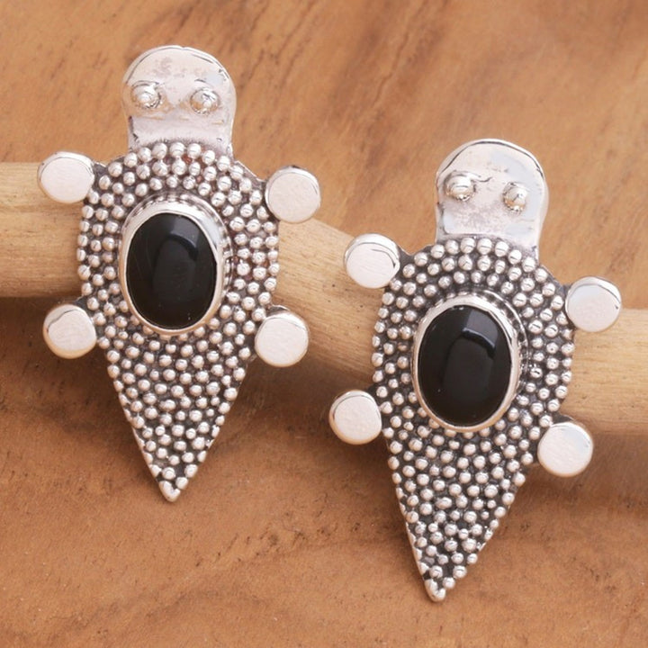 Sterling Silver Onyx Tortoise Button Earrings 'Heaven's Black Tortoise' These 'Heaven's Black Tortoise' button earrings by Independent Artisans are a precious and unique piece from Balinese artisan Anya. Inspired by tortoises, which are related to wisdom and immortality, the earrings feature these tender creatures with speckled shells and gorgeous onyx stones as the centerpieces. This design beautifully blends simplicity with animal motifs and traditional Balinese designs, a reflection of Anya's optimism and his vision to innovate while preserving cultural heritage.